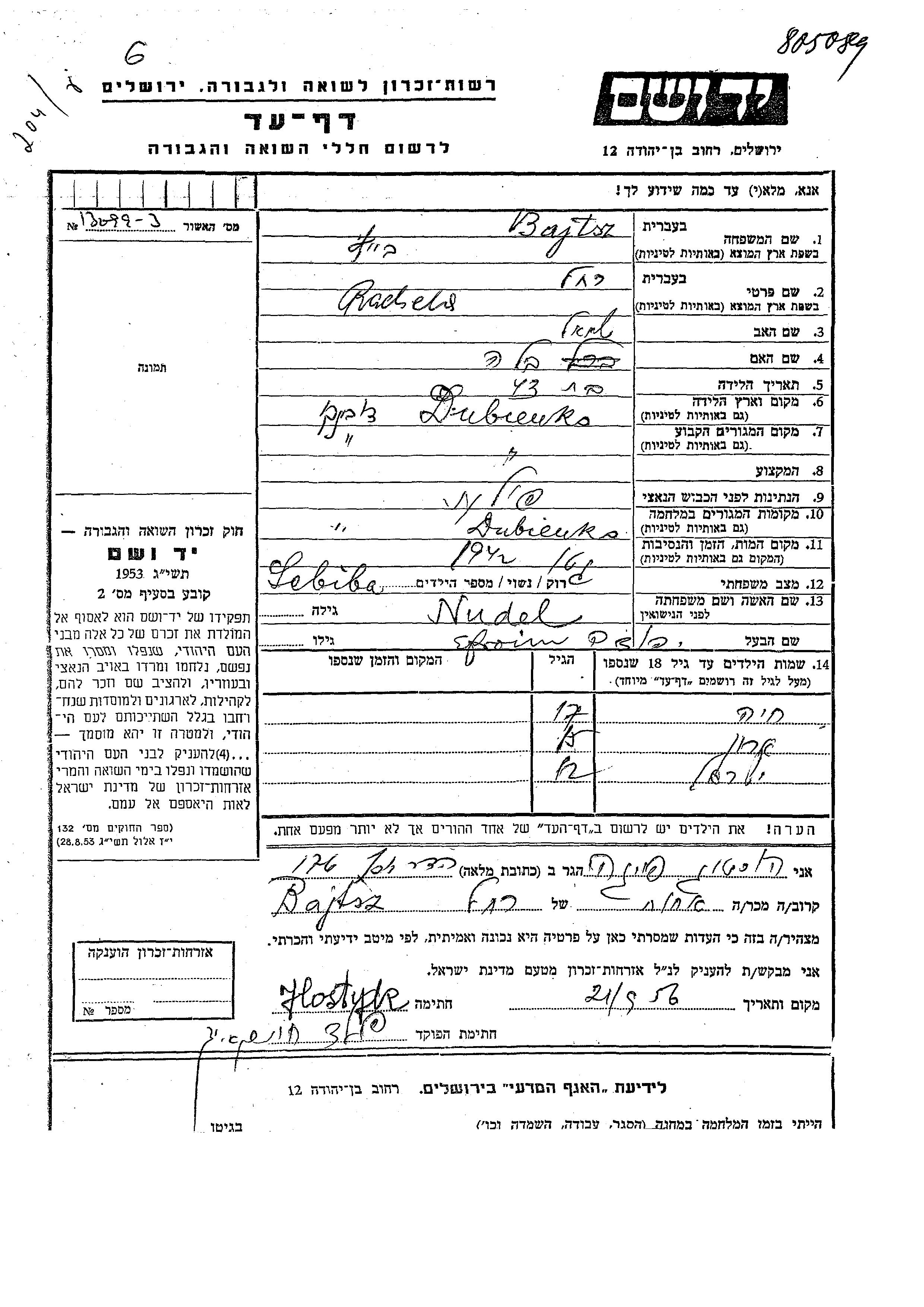 יד ושם - המפעל להנצחת השמות בדפי עד