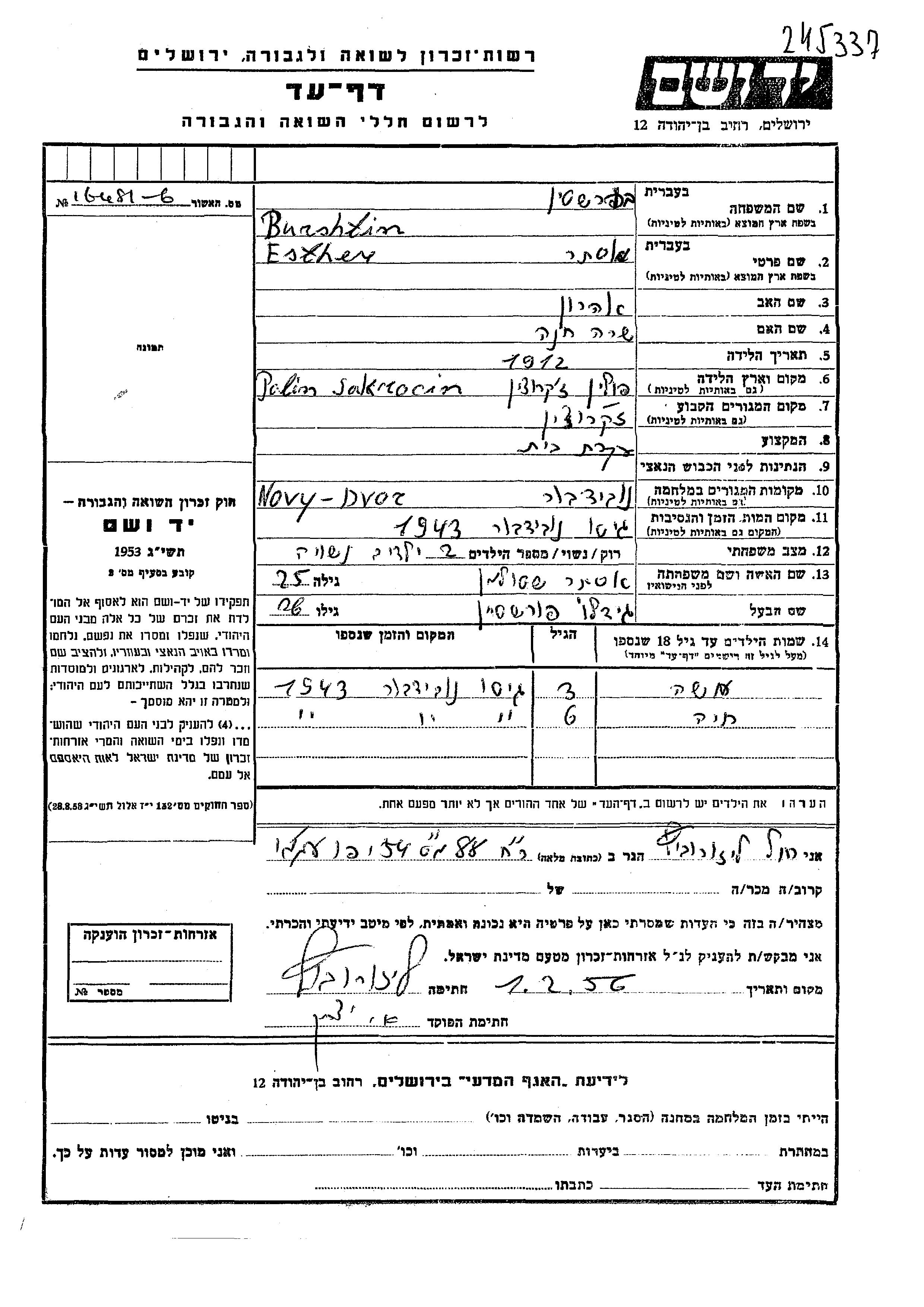 יד ושם - המפעל להנצחת השמות בדפי עד