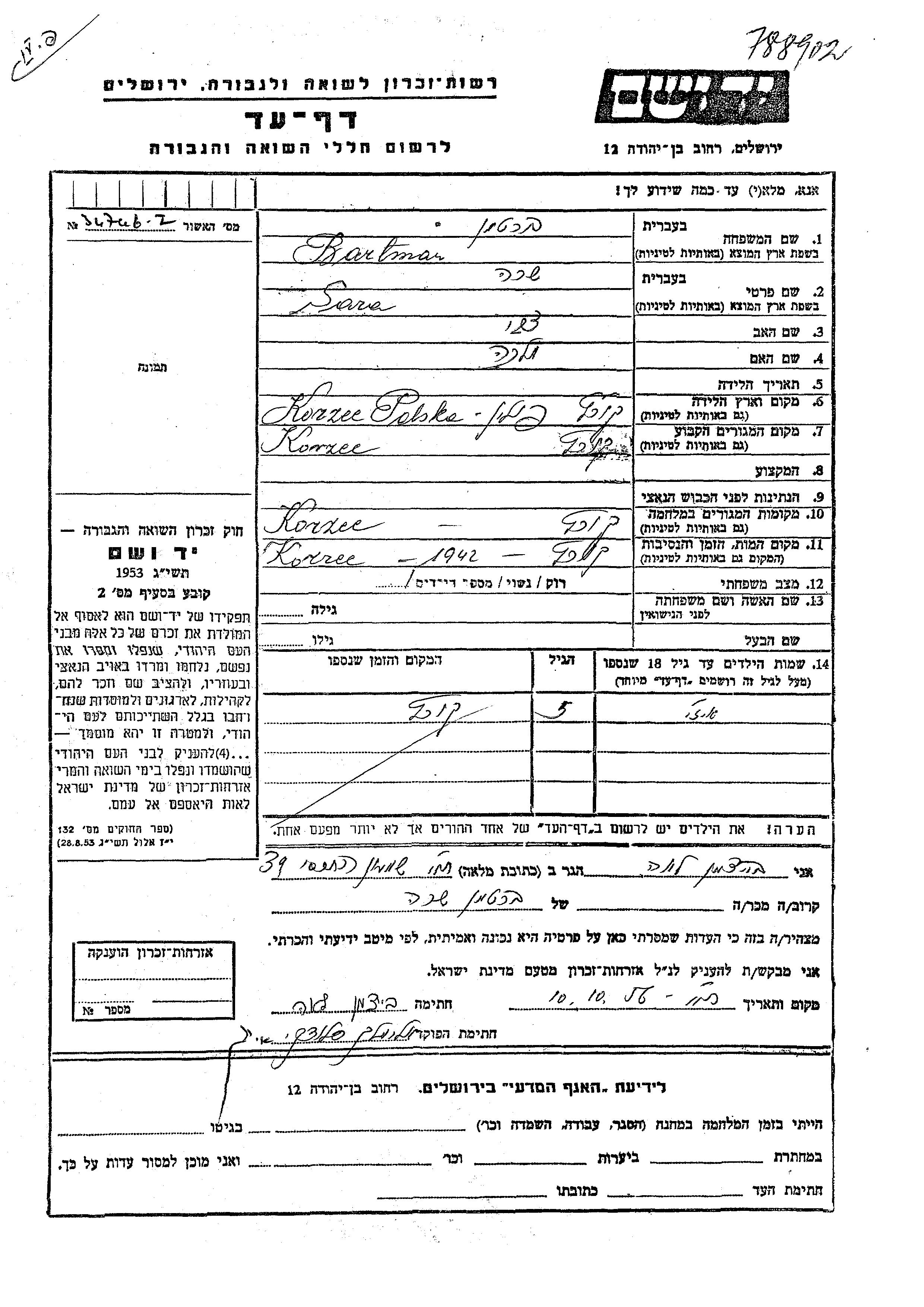 שרה נרצחה בשואה. מקום המוות: Korec שבפולין בשנת 1942.