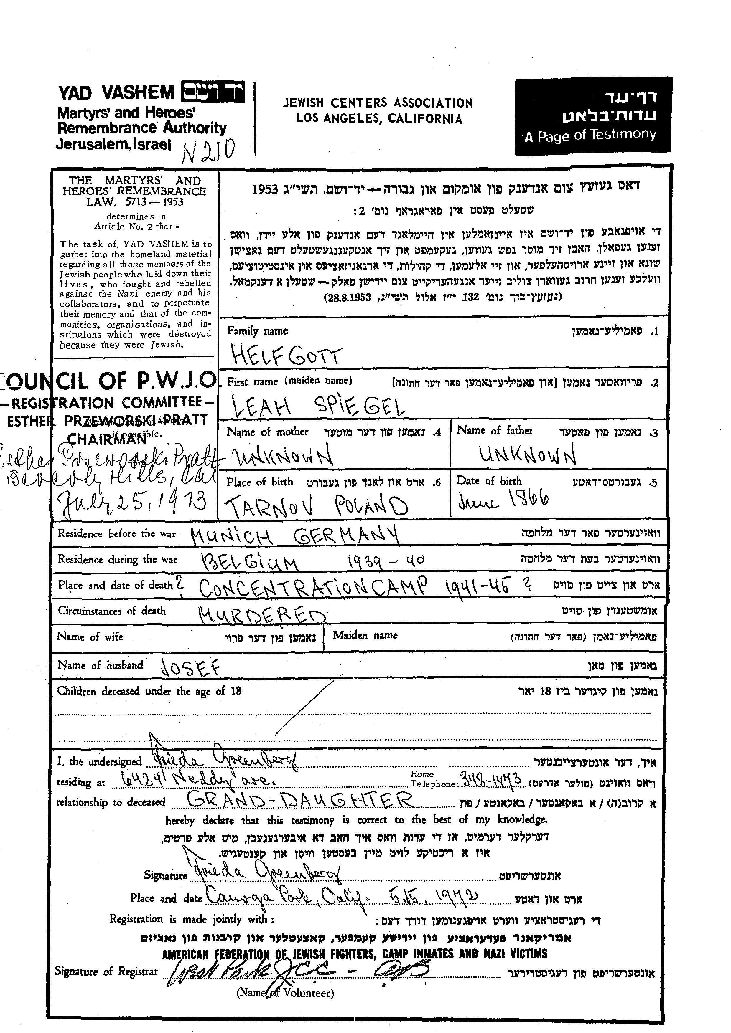 Search by name of any place during the Holocaust period: Town,Village, Camp, Ghetto, District, Region or Country