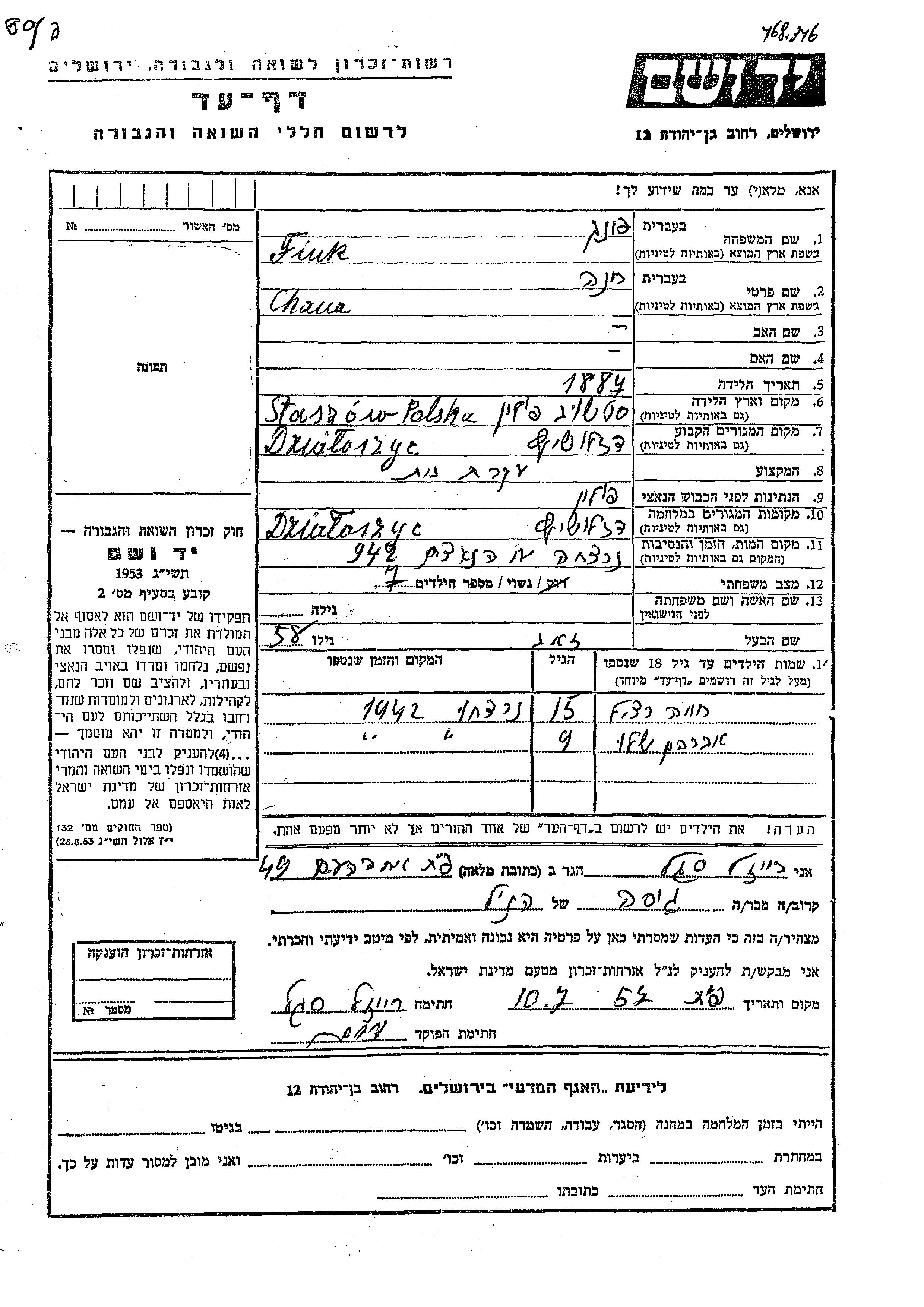 פינק פונק חנה 1887 Dzialoszyce, פולין דף-עד