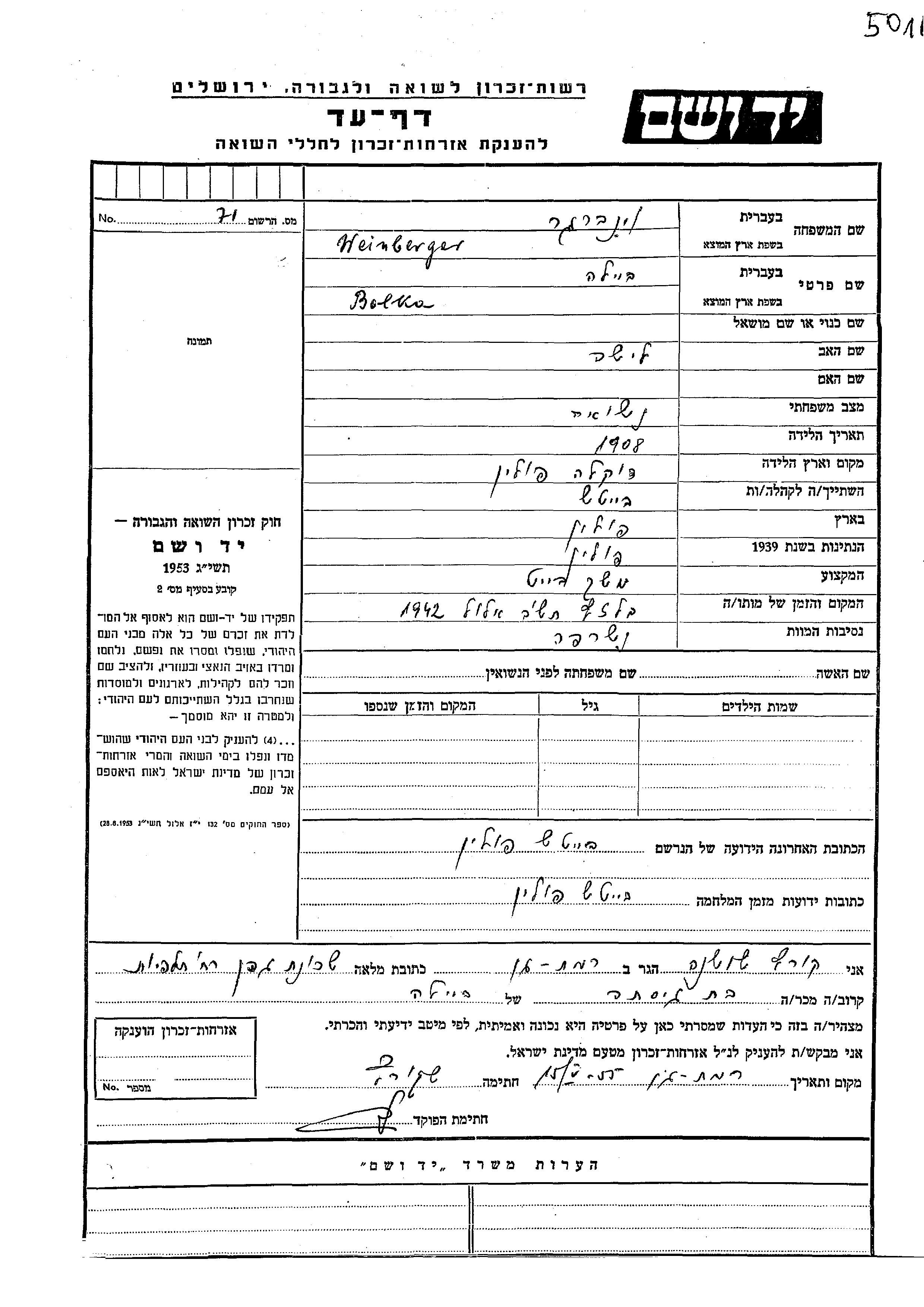יד ושם - המפעל להנצחת השמות בדפי עד