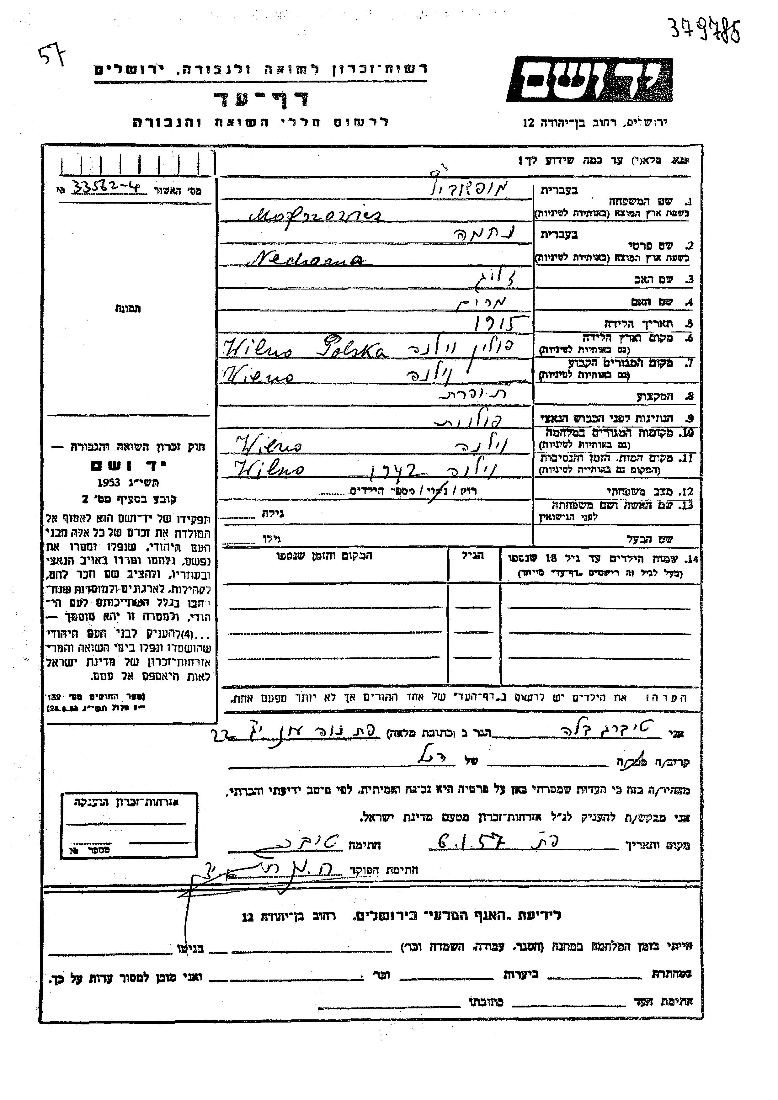 Mofszowicz Nechama 1915 Wilno, פולין דף-עד