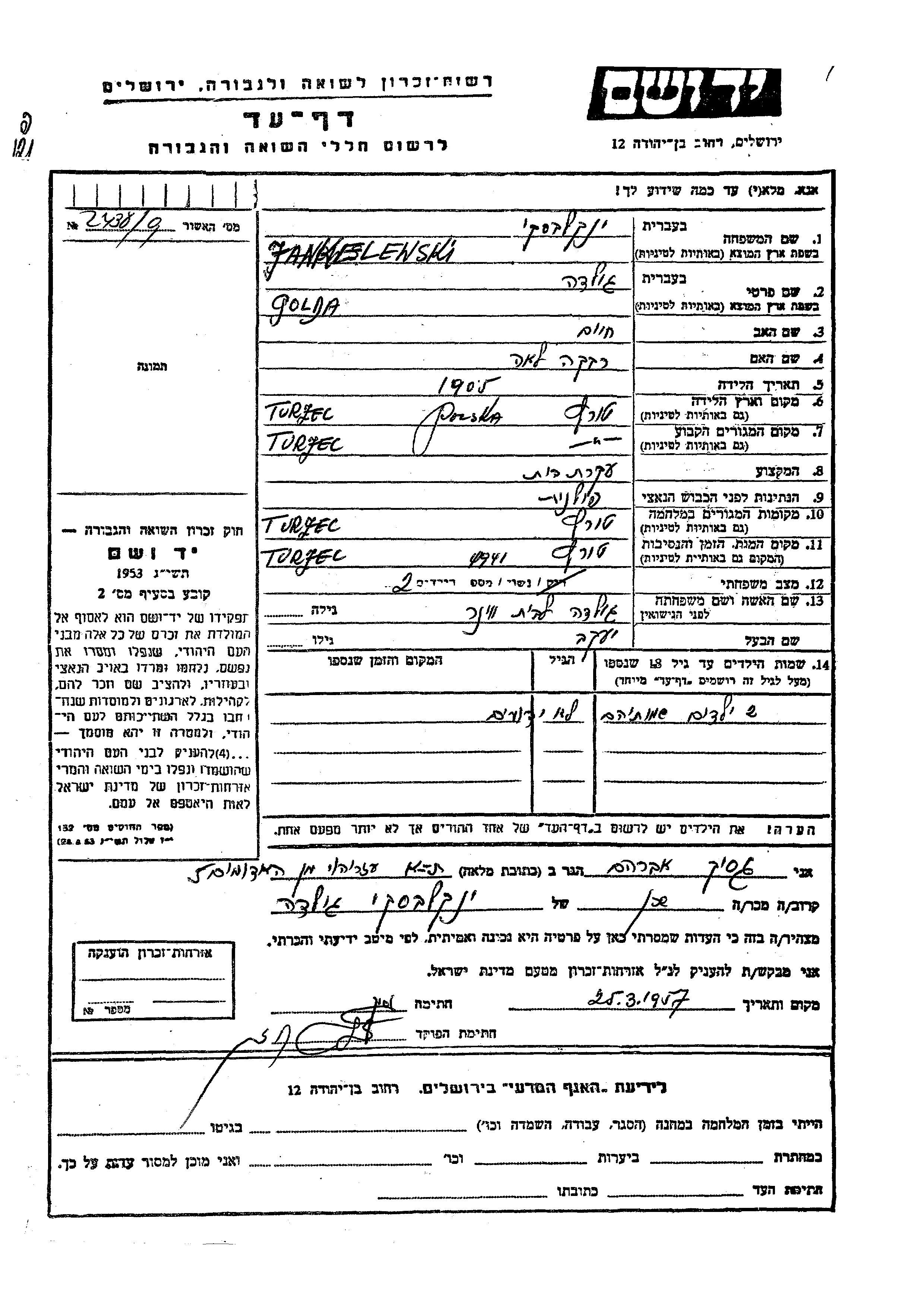 גולדה Jankelewski לבית ווינר נולדה בTurzec שבפולין בשנת 1905 לחיים ורבקה לאה. היא היתה עקרת בית ונשואה ליעקב. לפני מלחמת העולם השניה התגוררה בTurzec שבפולין. בזמן המלחמה היא היתה בTurzec שבפולין. גולדה נרצחה בשואה. מקום המוות: Turzec שבפולין בשנת 1941.