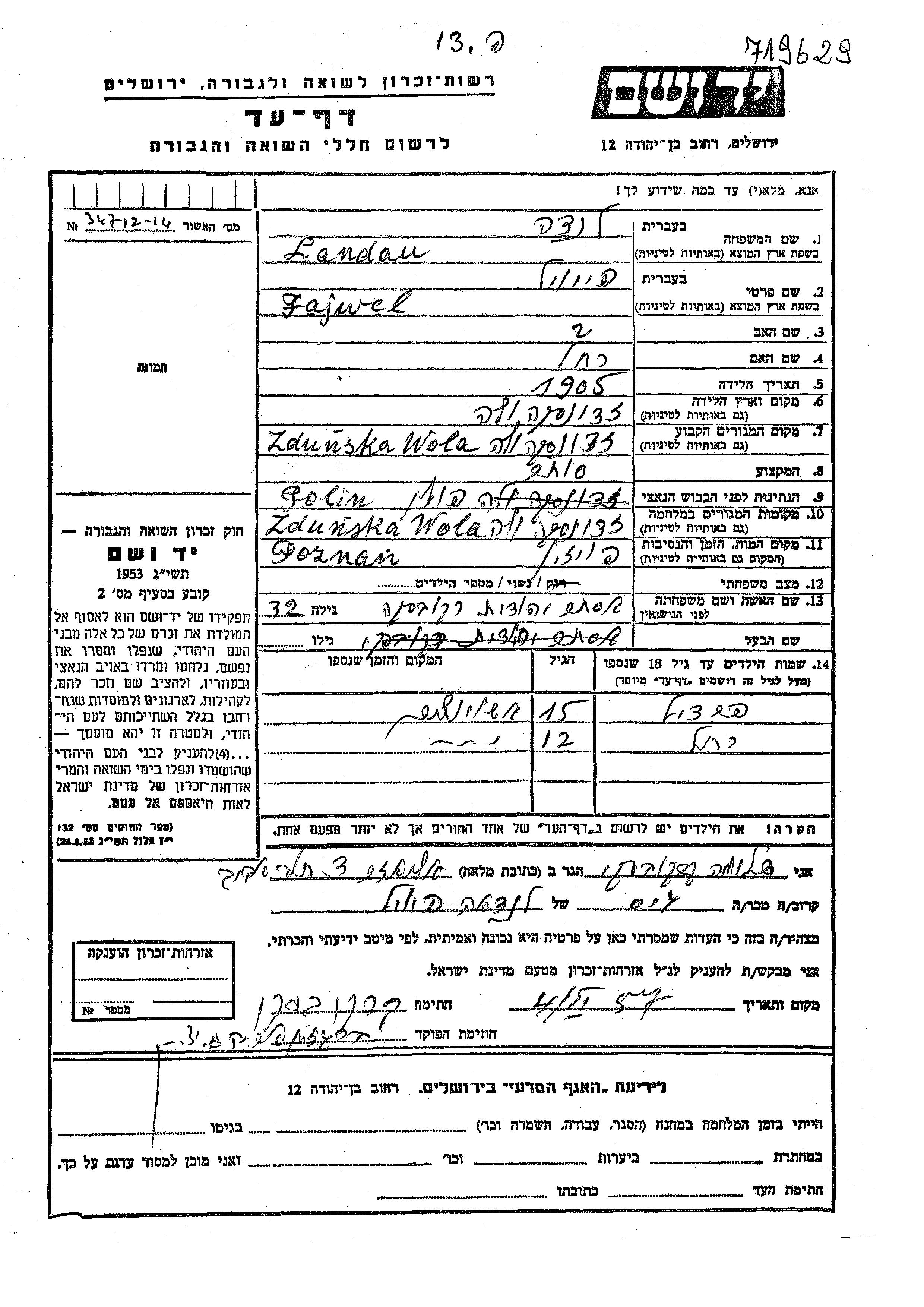 לנדה לנדאו Fajwel 1905 Zdunska Wola, פולין דף-עד