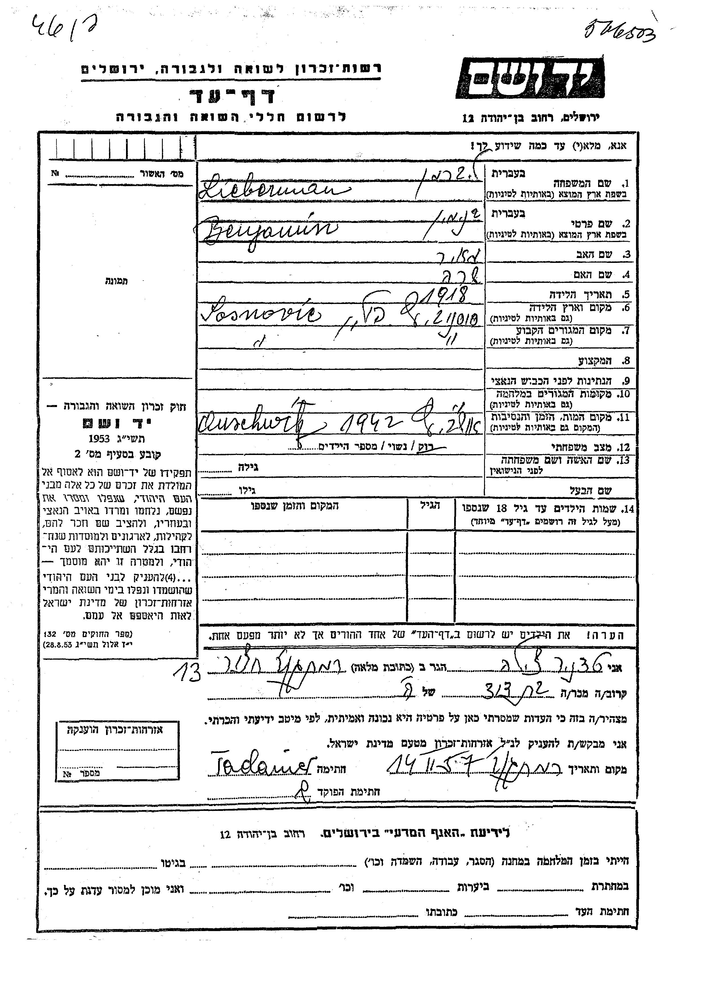 Lieberman Benjamin 1918 Sosnovice, פולין דף-עד