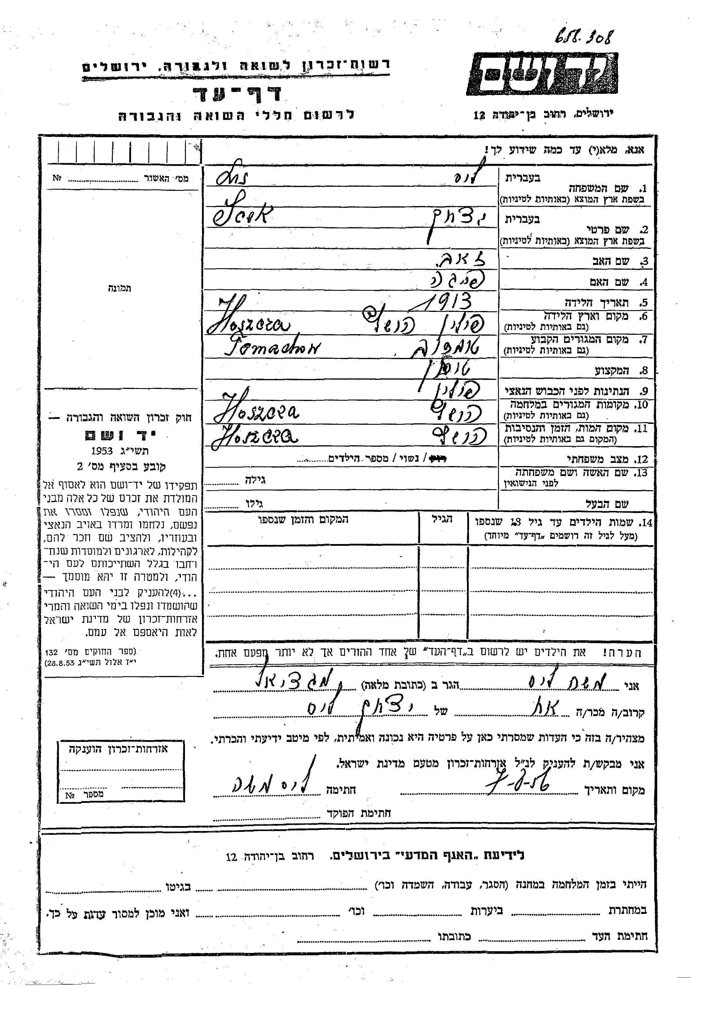 יד ושם - המפעל להנצחת השמות בדפי עד
