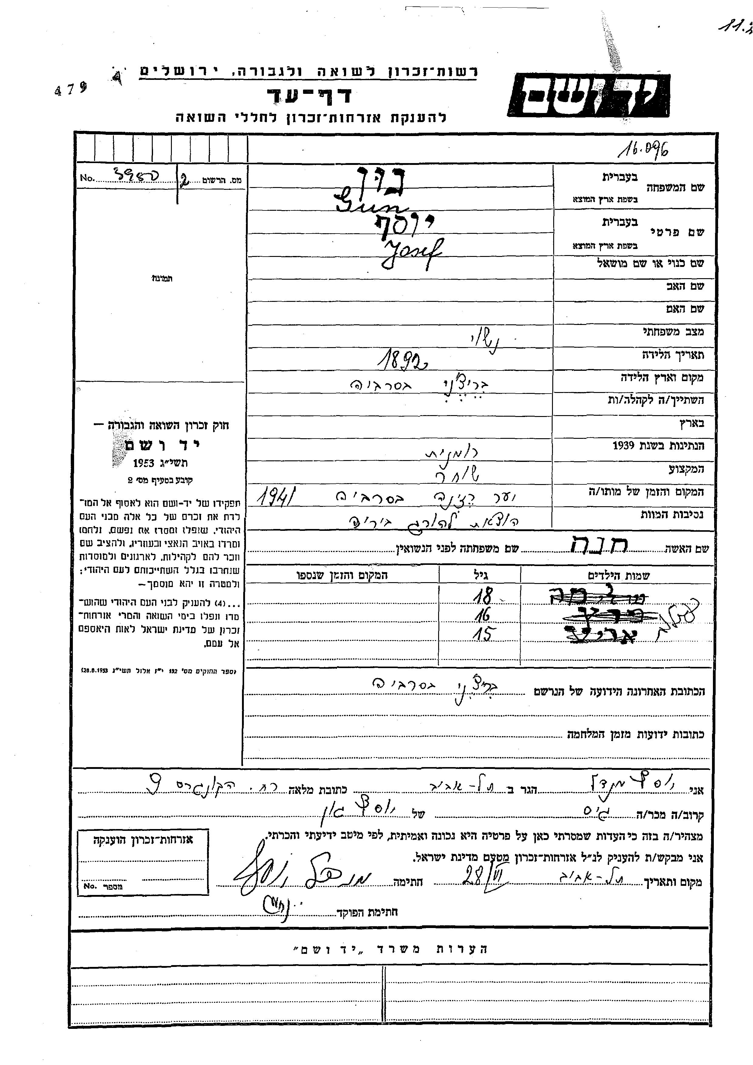 חיפוש שם מוסר דף העד. חיפוש לפי כל שם פרטי, כולל כינוי או שם חיבה