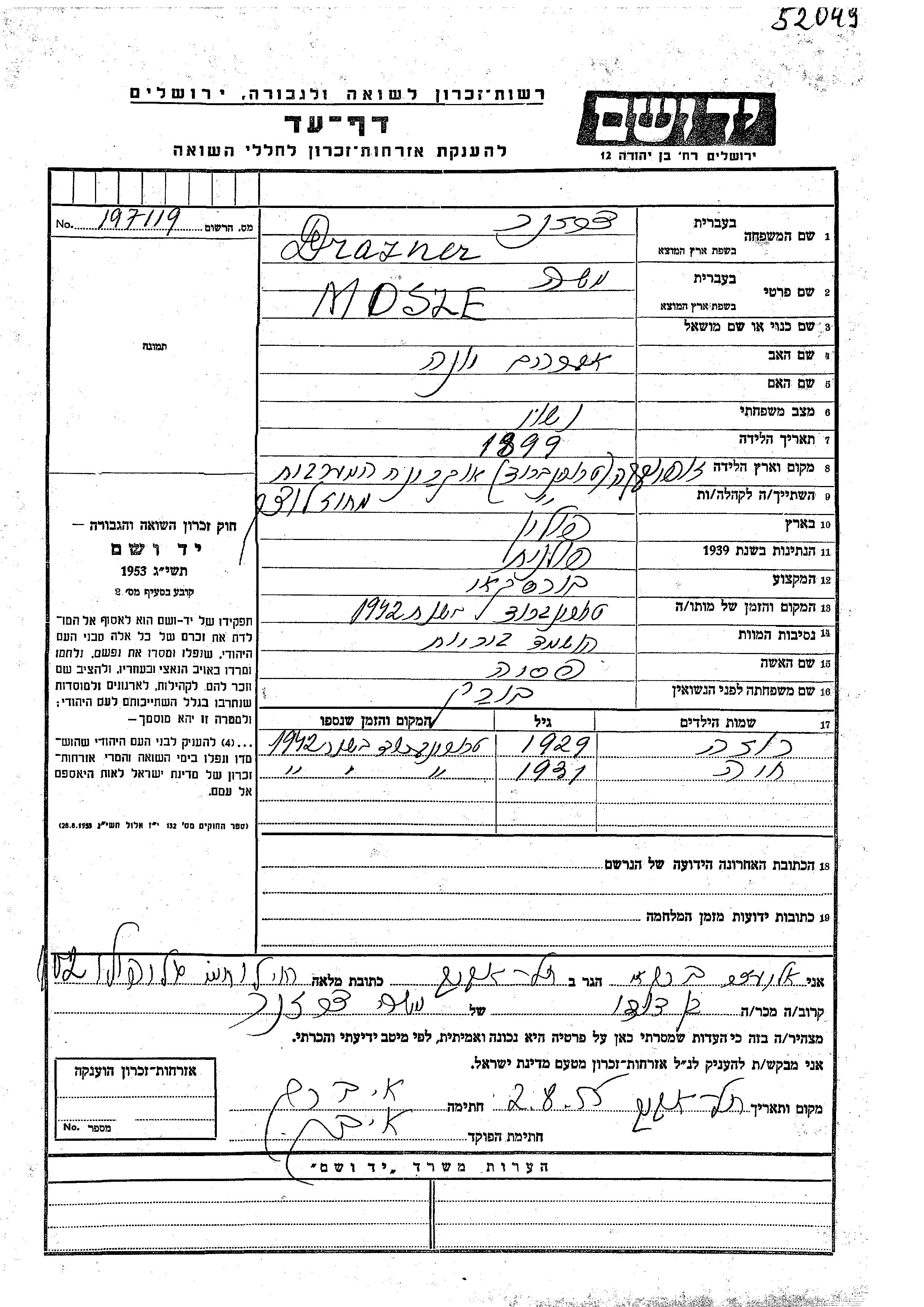חיפוש שם מוסר דף העד. חיפוש לפי כל שם פרטי, כולל כינוי או שם חיבה