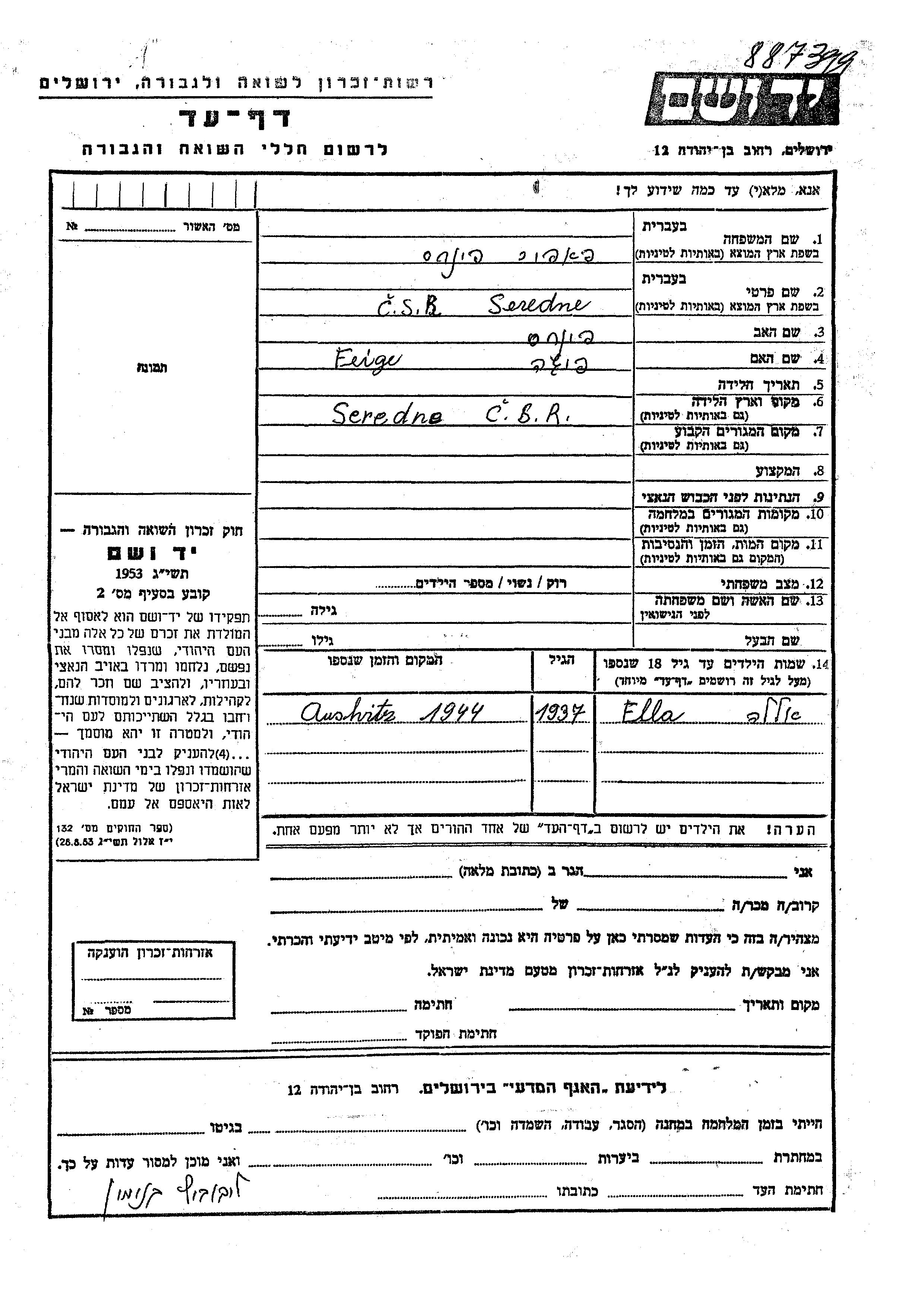 יד ושם - המפעל להנצחת השמות בדפי עד