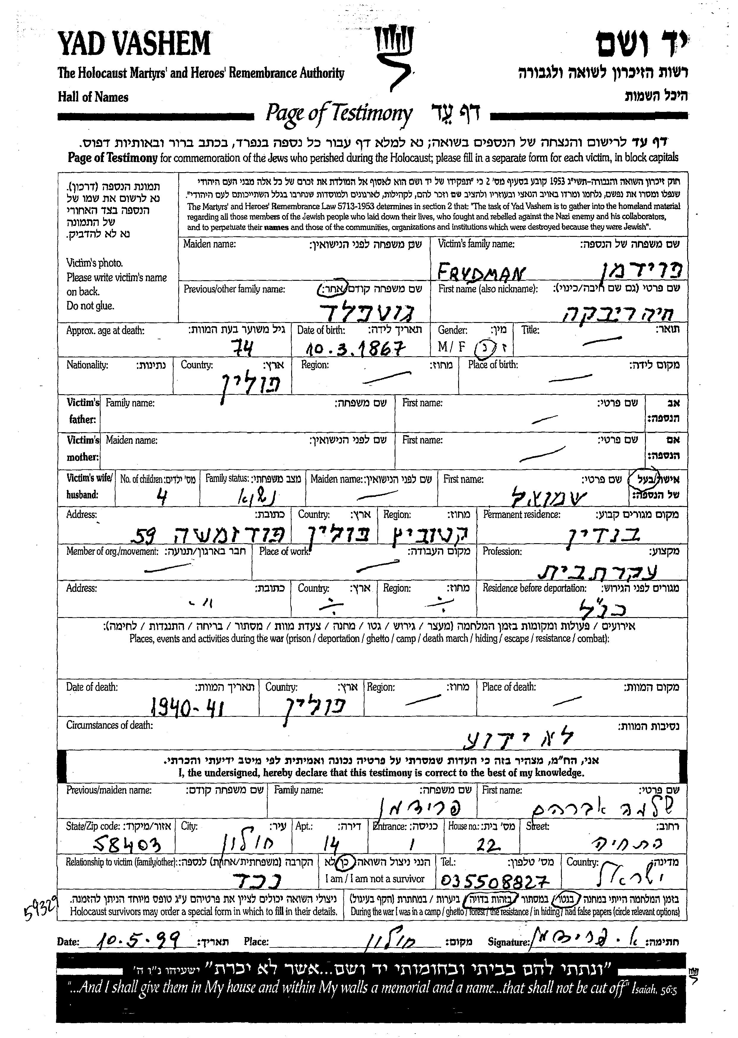 Frydman גוטפלד חיה רבקה 1867 Będzin, פולין דף-עד