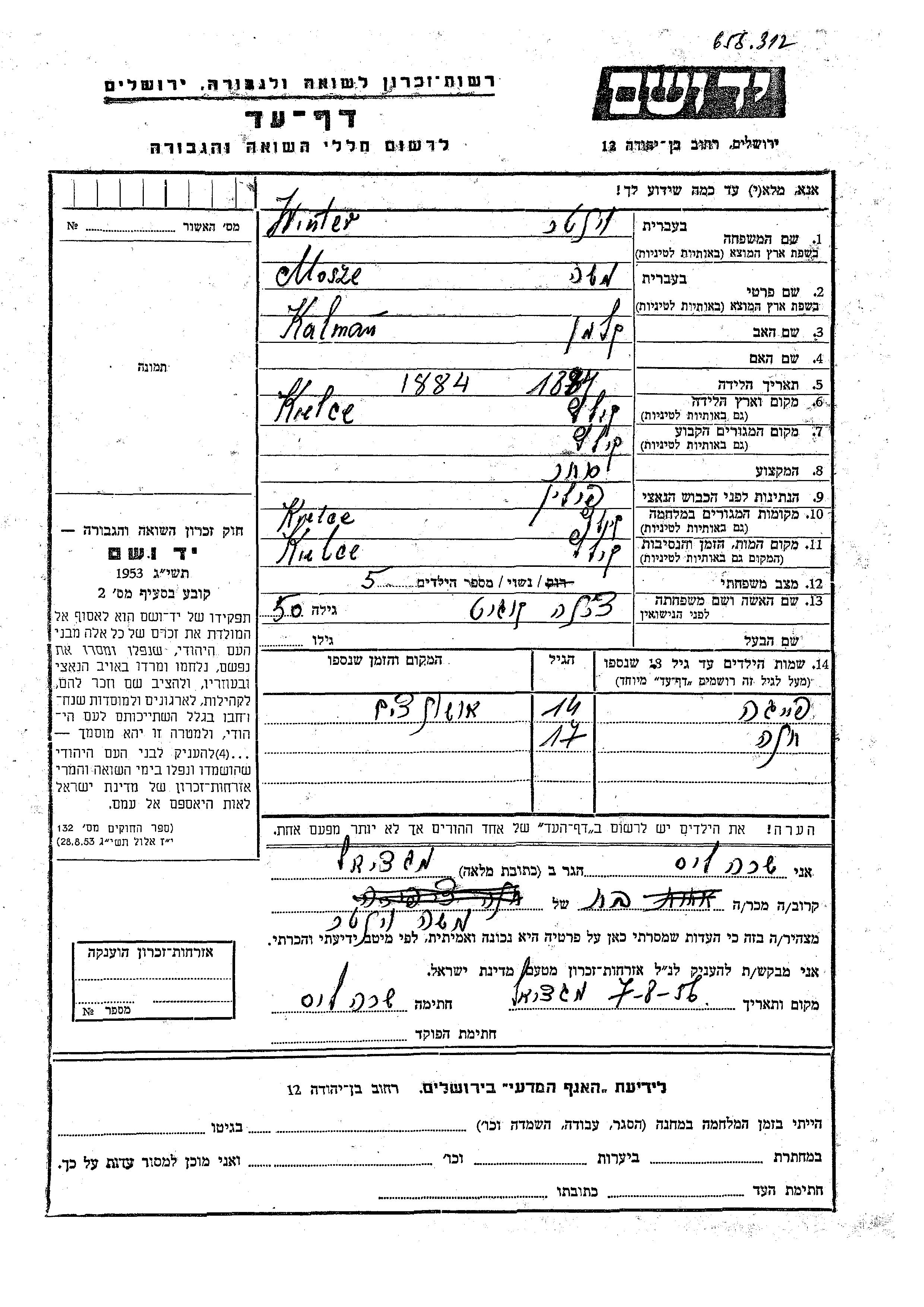 יד ושם - המפעל להנצחת השמות בדפי עד