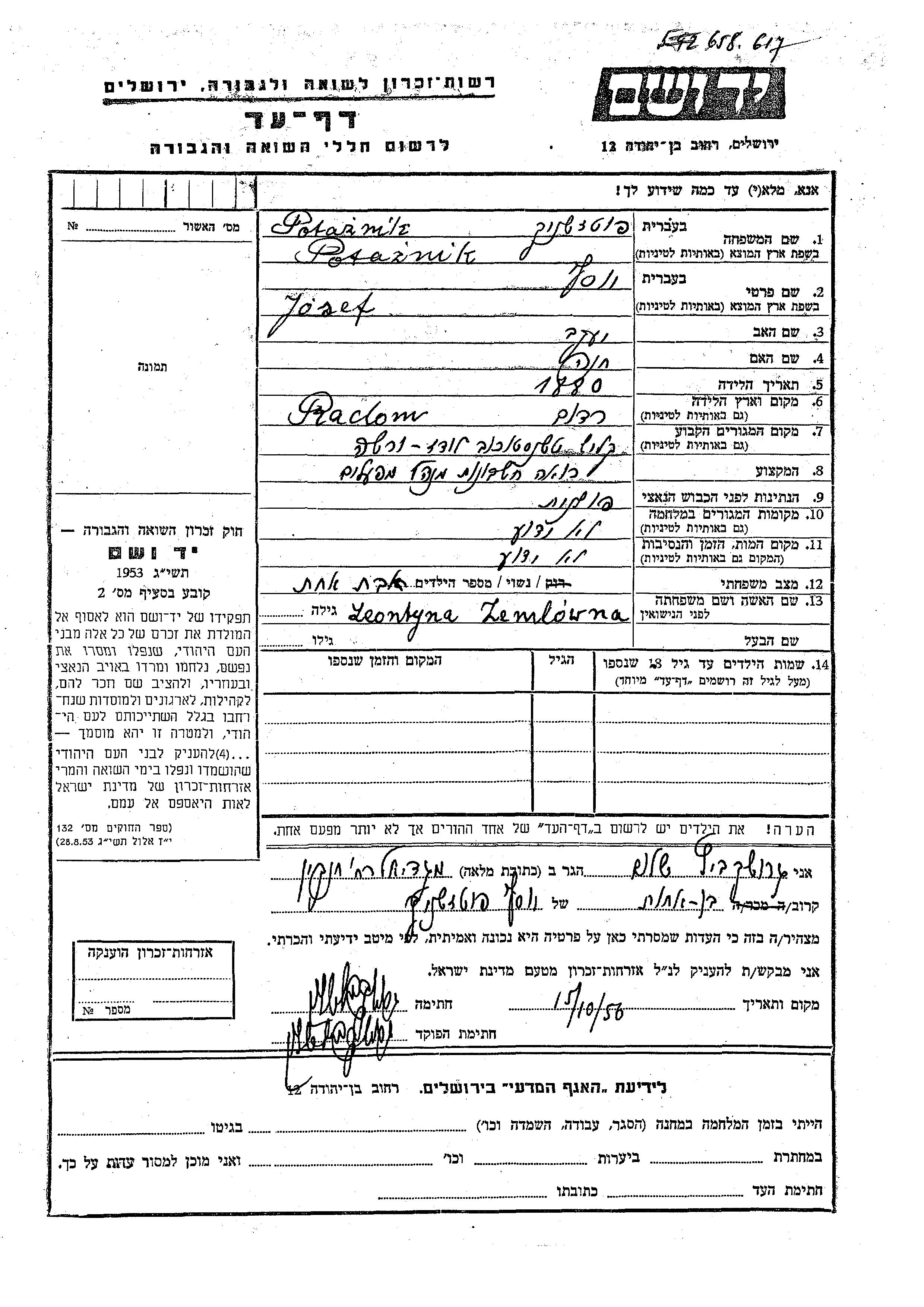 יד ושם - המפעל להנצחת השמות בדפי עד