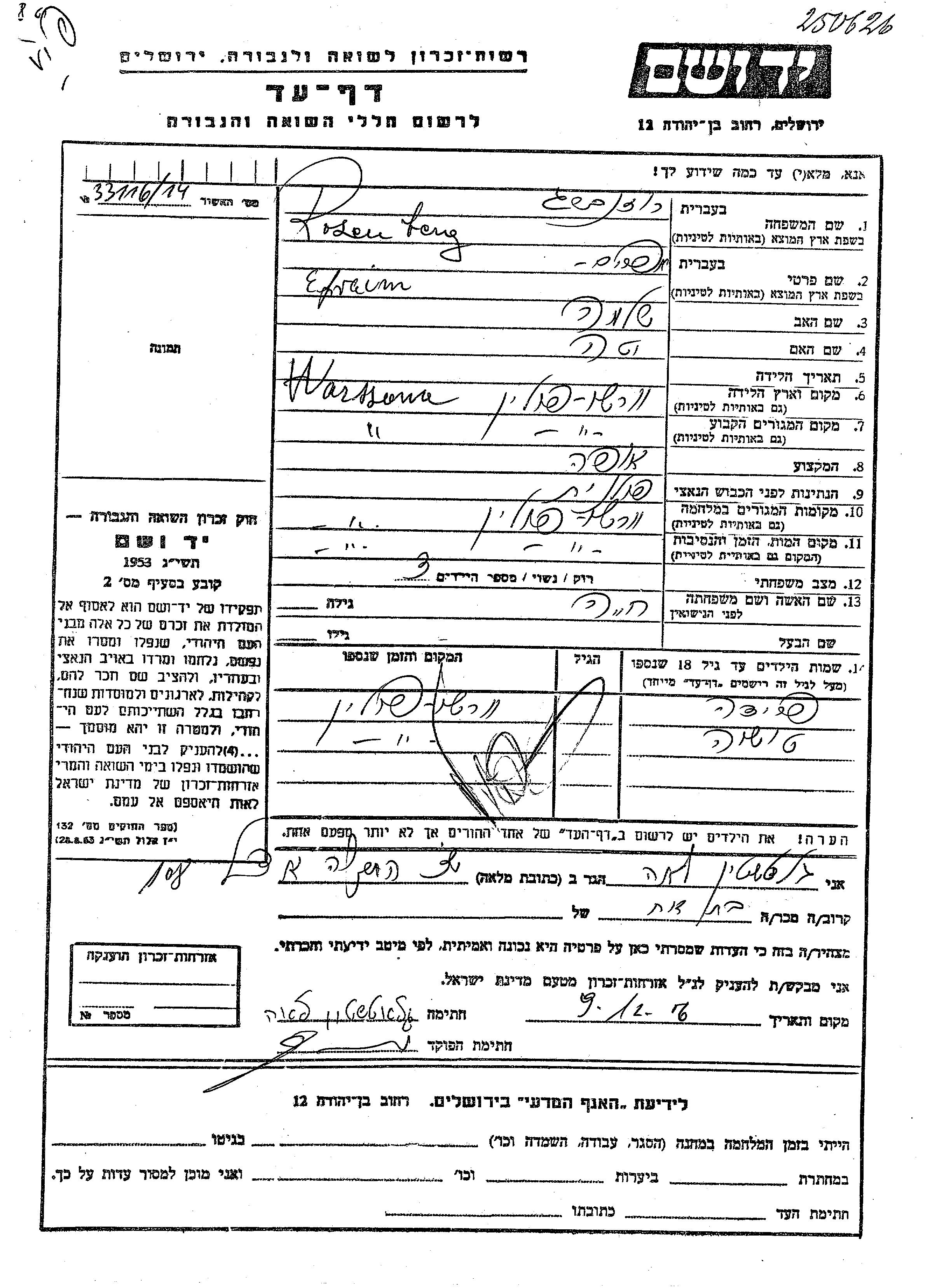יד ושם - המפעל להנצחת השמות בדפי עד