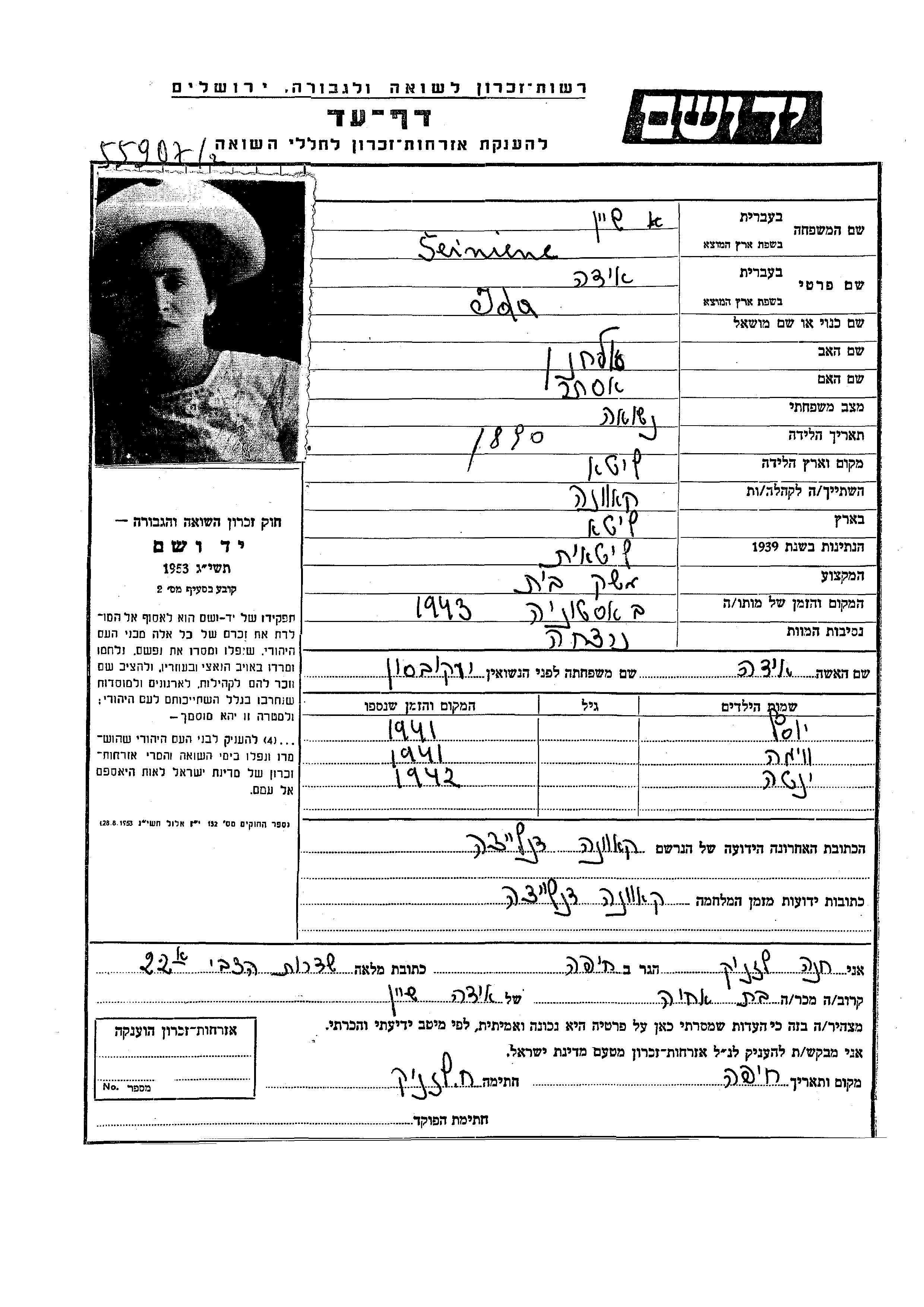 יד ושם - המפעל להנצחת השמות בדפי עד