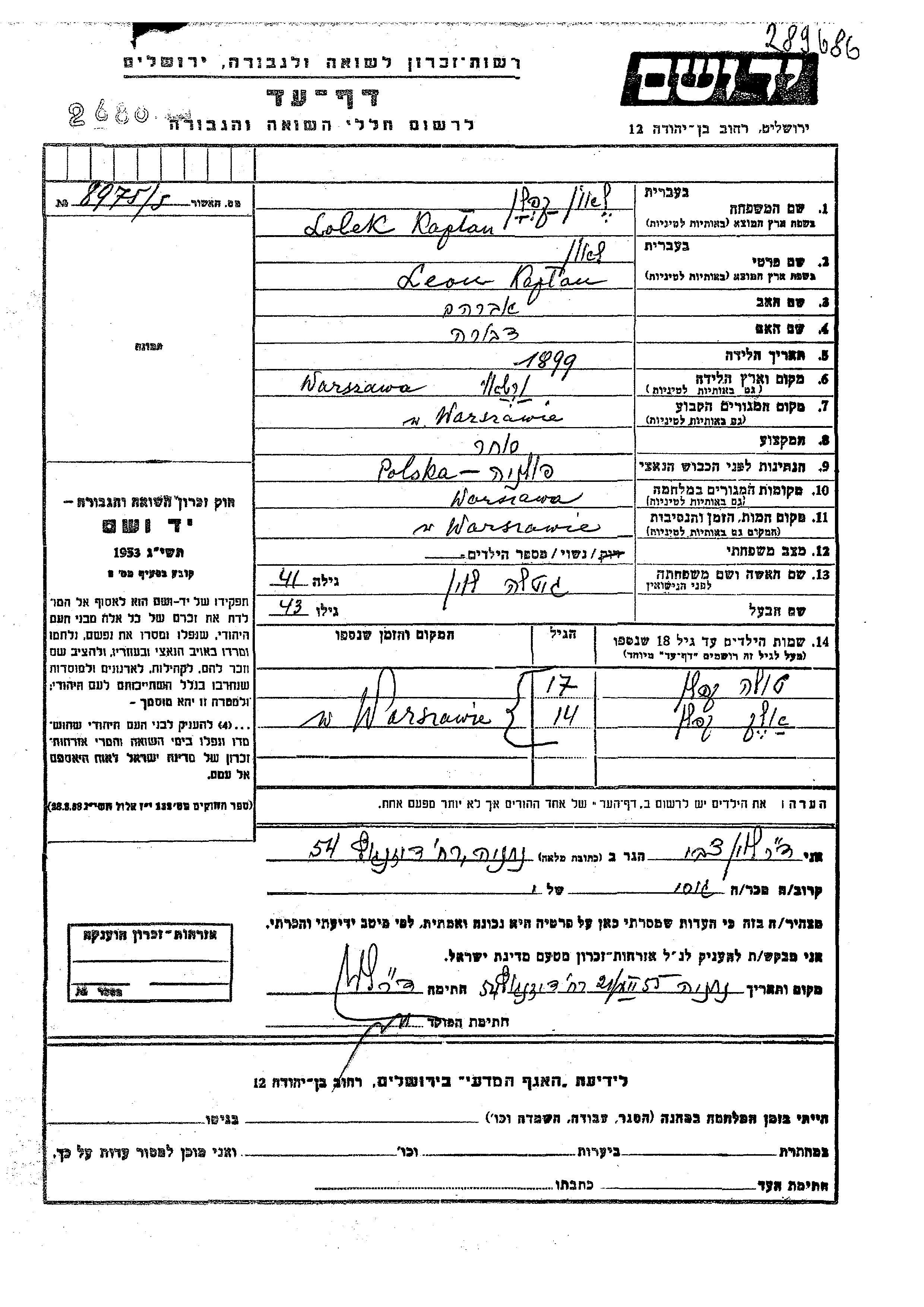 יד ושם - המפעל להנצחת השמות בדפי עד
