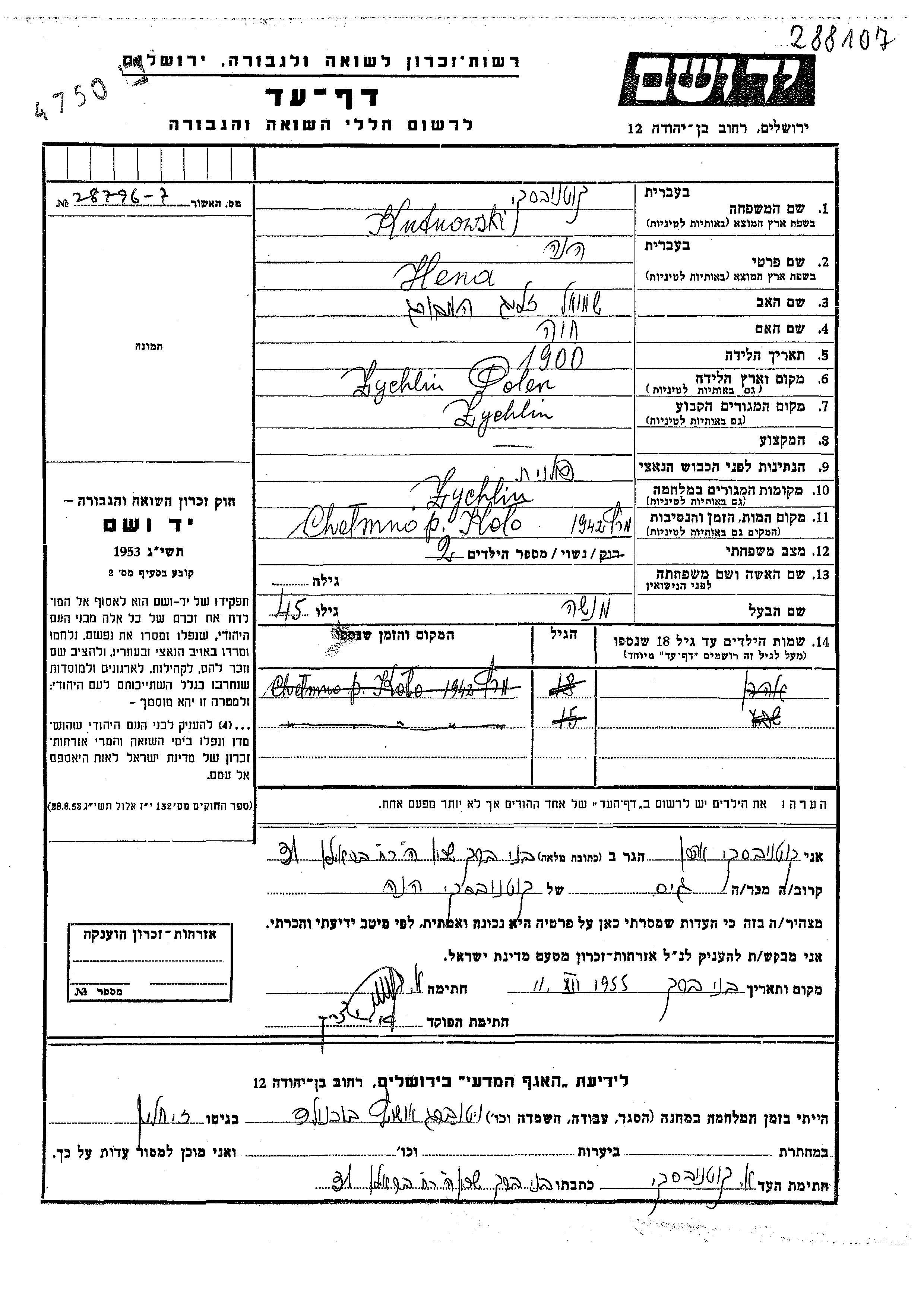 יד ושם - המפעל להנצחת השמות בדפי עד