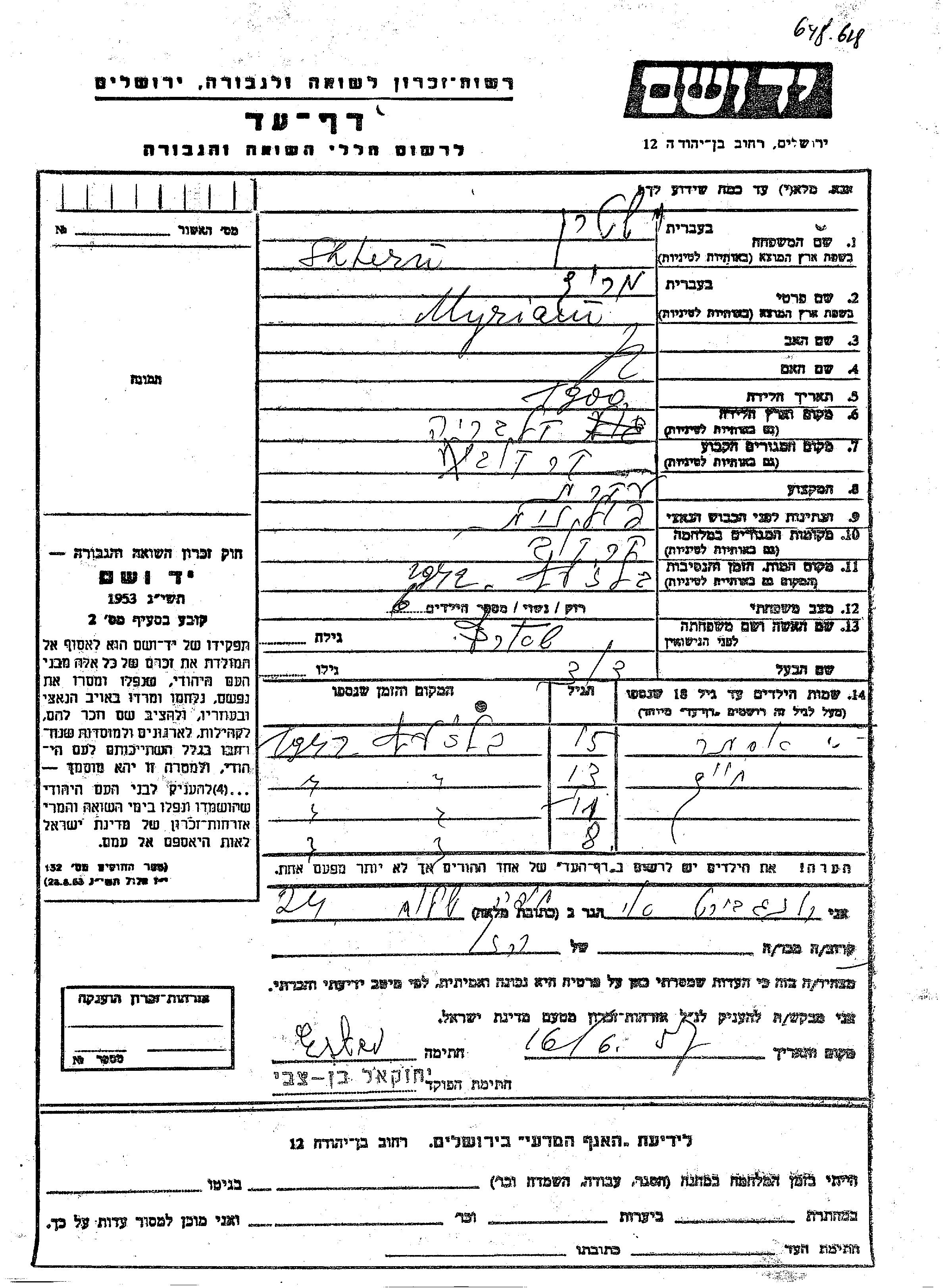 יד ושם - המפעל להנצחת השמות בדפי עד