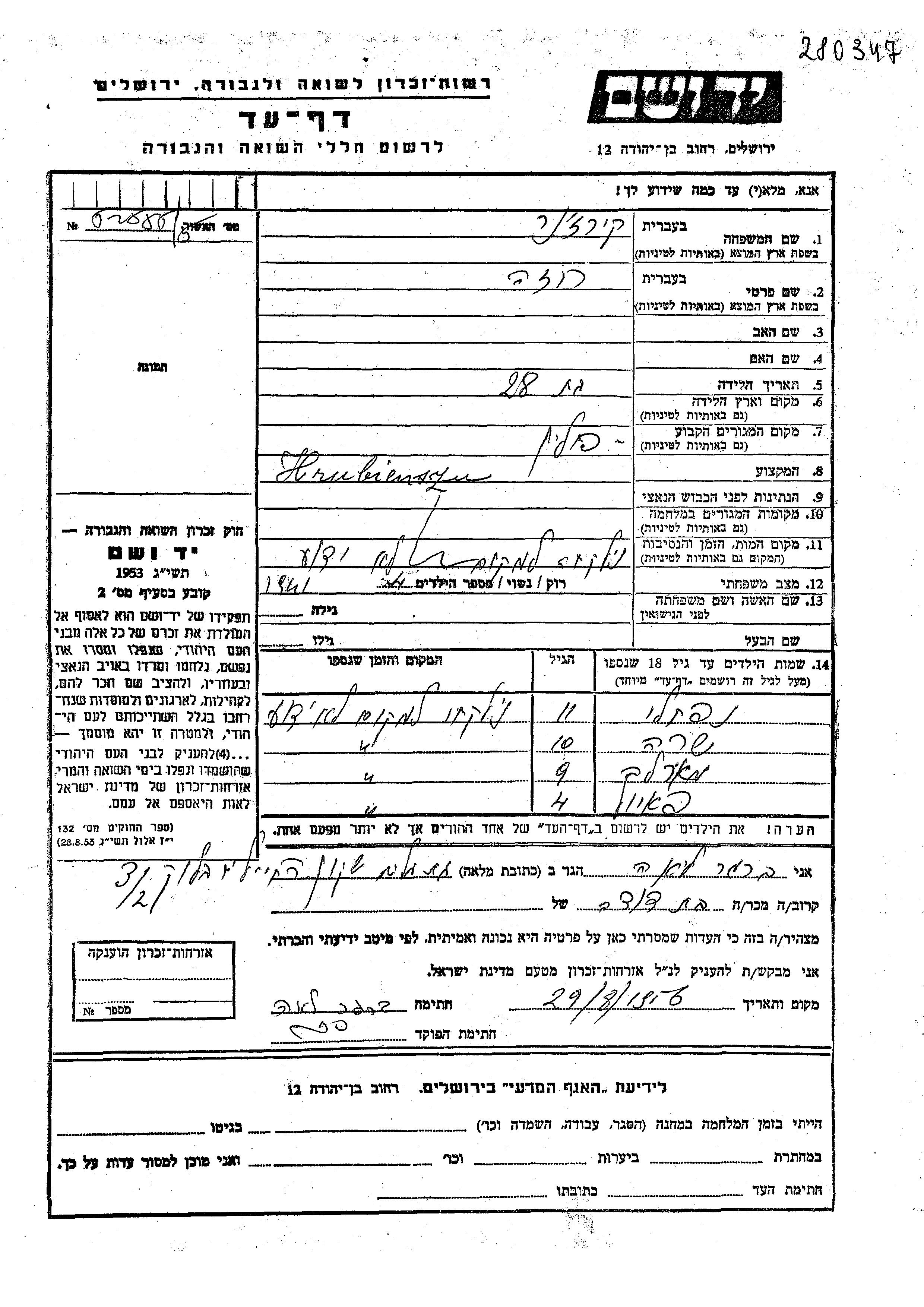יד ושם - המפעל להנצחת השמות בדפי עד