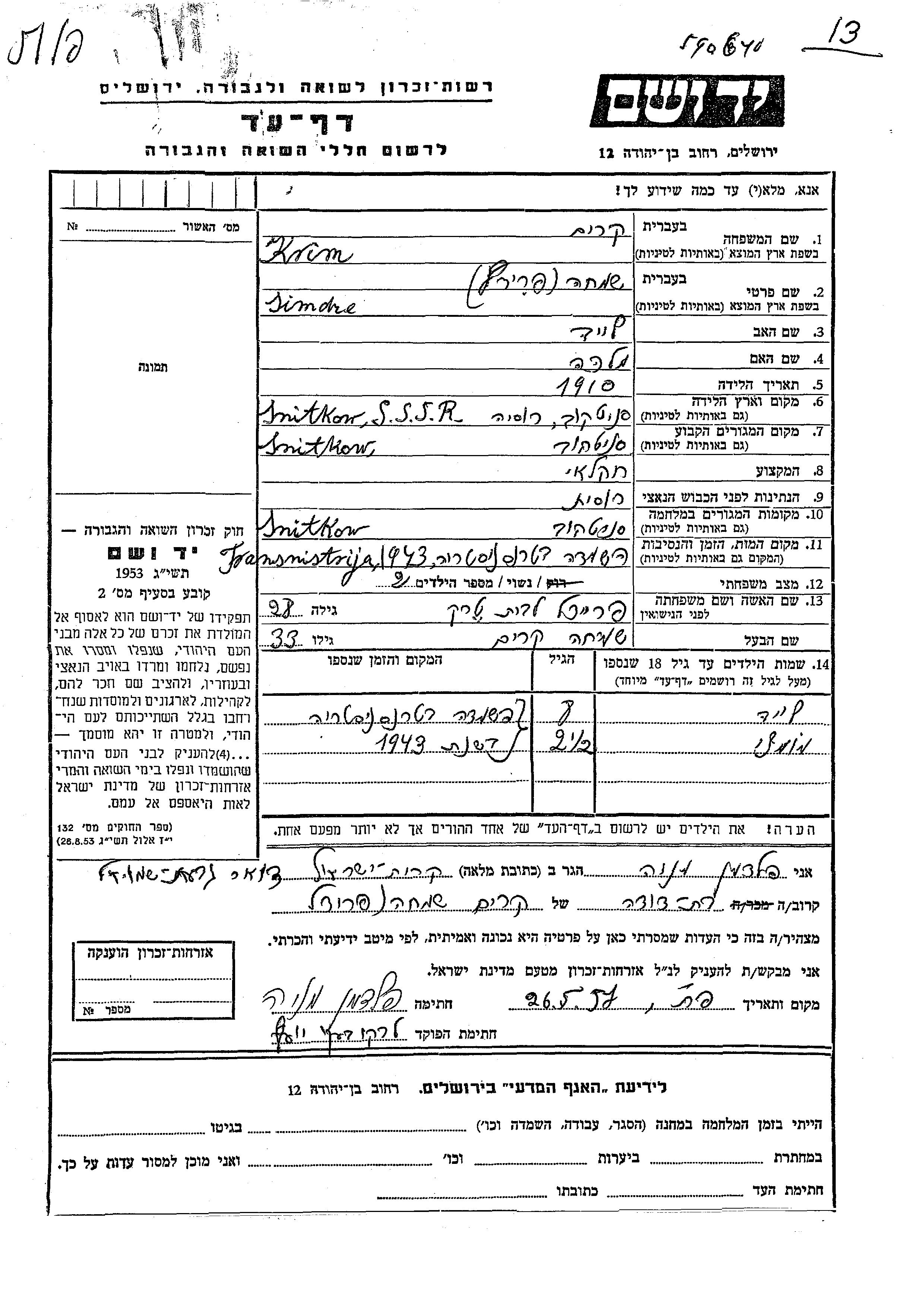 קרים לייב Snitkowo, אוקראינה (ברה"מ) דף-עד