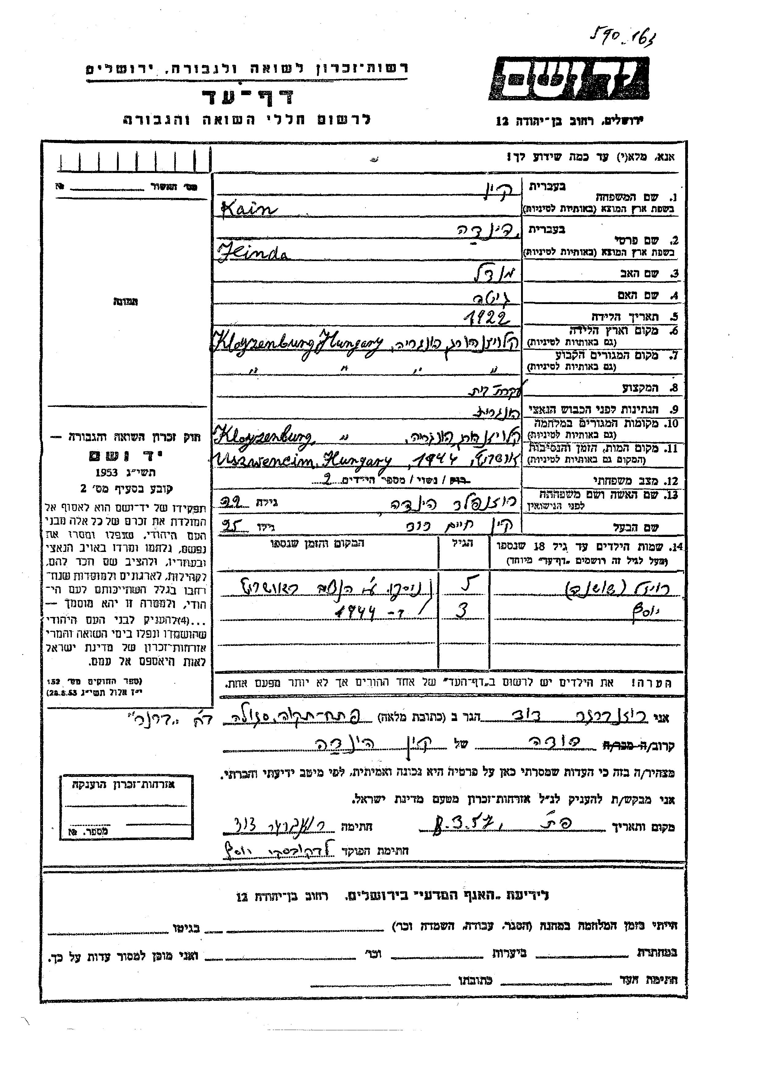 יד ושם - המפעל להנצחת השמות בדפי עד