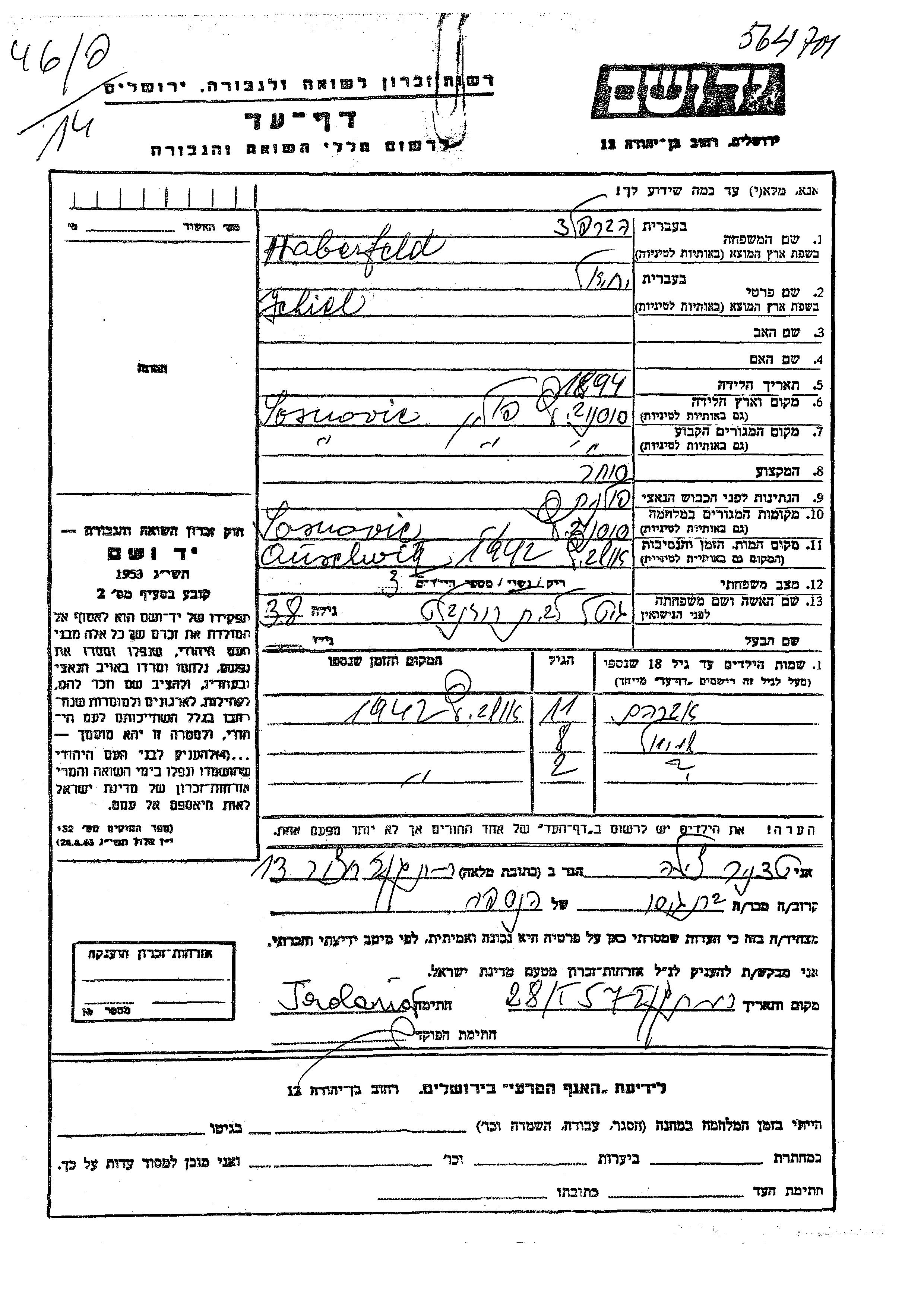הברפלד שמואל Sosnowiec, פולין דף-עד
