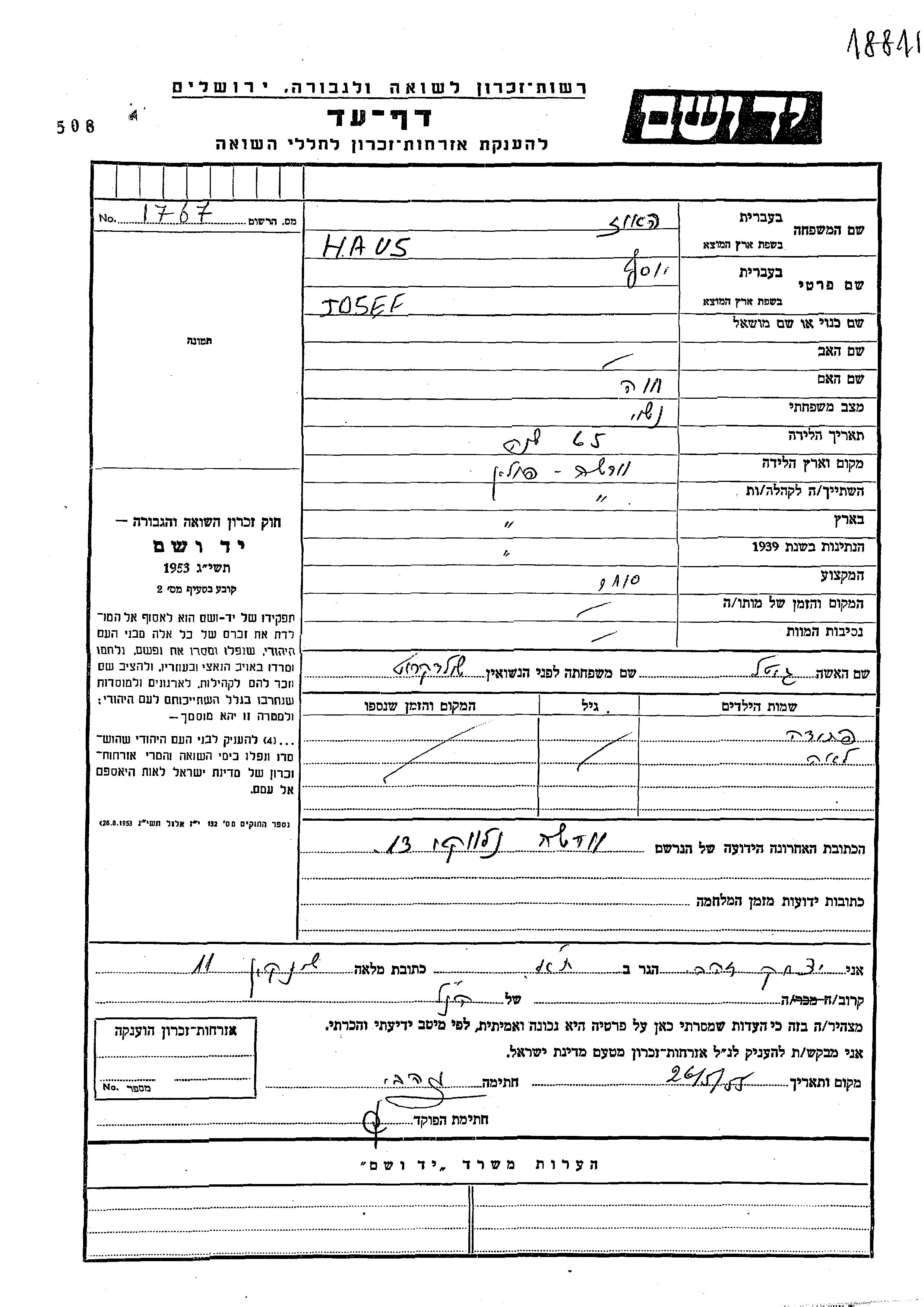 יד ושם - המפעל להנצחת השמות בדפי עד