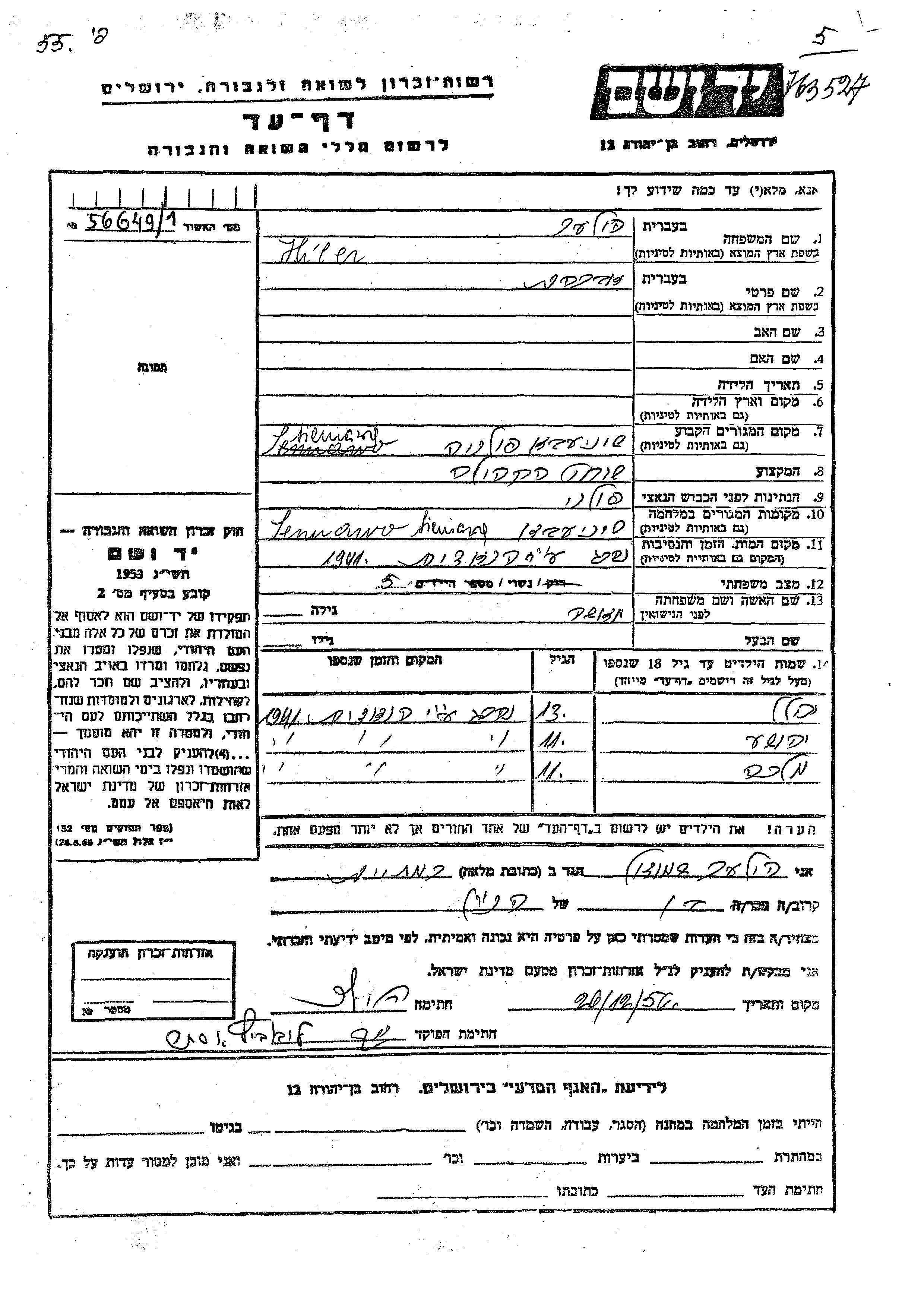 יד ושם - המפעל להנצחת השמות בדפי עד