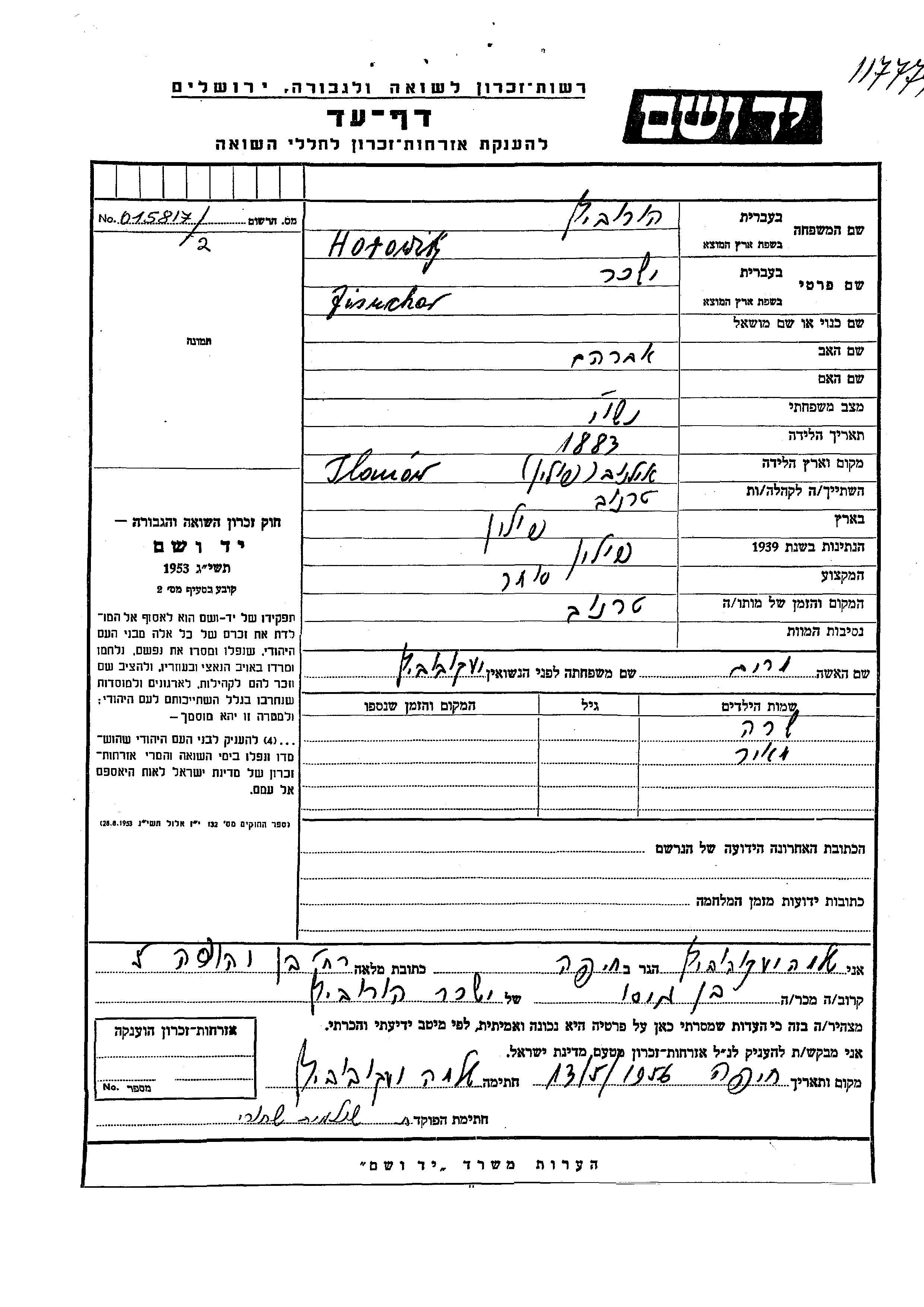 יד ושם - המפעל להנצחת השמות בדפי עד