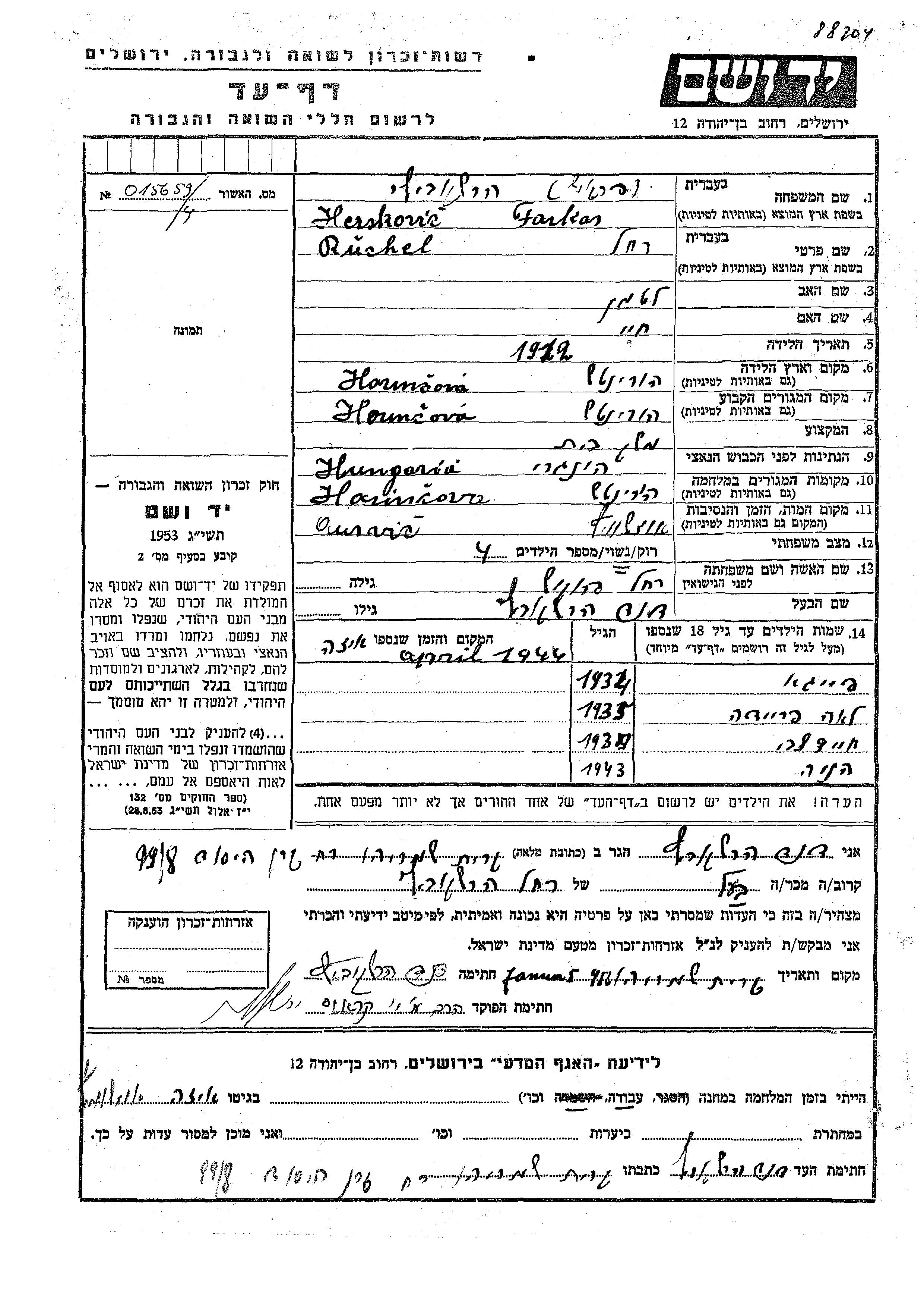 הניה Herskovic נולד/ה לדוד וRuchel לבית Farkas פרקוש. הוא/היא היה/היתה ילד/ילדה. לפני מלחמת העולם השניה התגורר/התגוררה בHorincovo שבצ'כוסלובקיה. בזמן המלחמה הוא/היא היה/היתה בHorincovo שבצ'כוסלובקיה. הניה נרצח/ה בשואה.