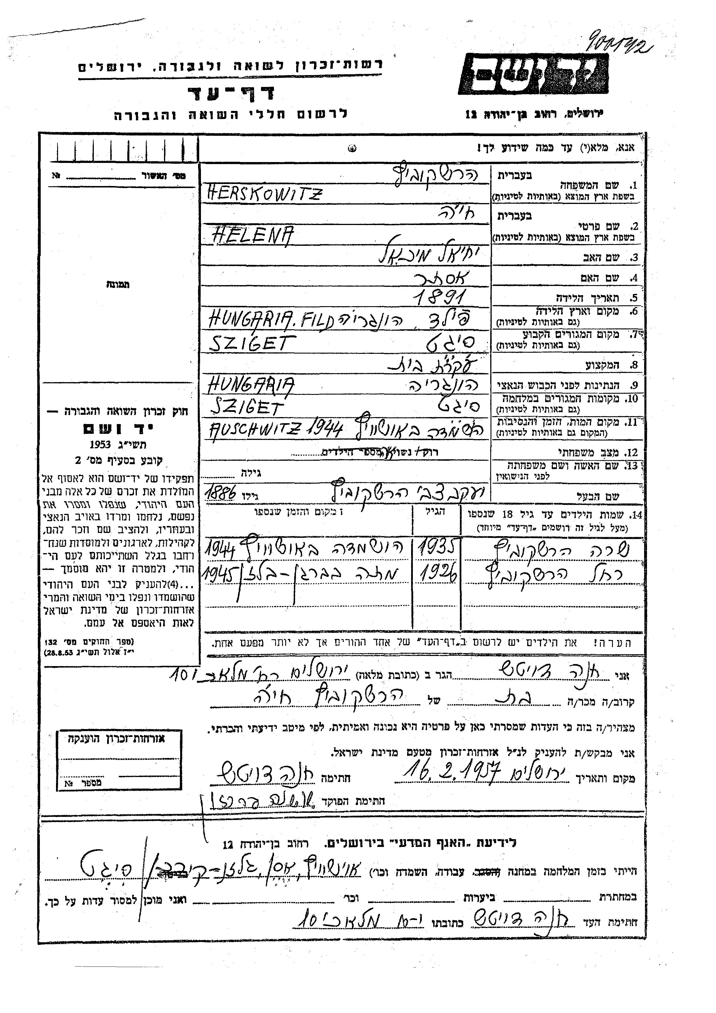 שרה Herskowitz נולדה בשנת 1935 ליעקב צבי וחייה הלנה. היא היתה ילדה. לפני מלחמת העולם השניה התגוררה בSighet שברומניה. בזמן המלחמה היא היתה בSighet שברומניה. שרה נרצחה בשואה.