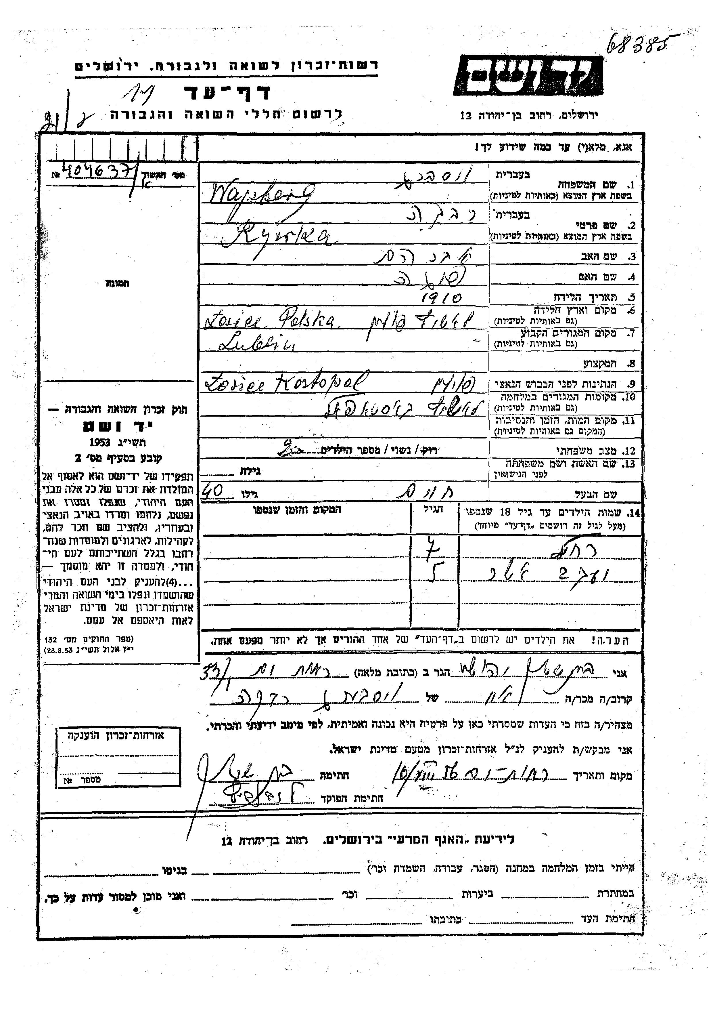 Wajsberg יעקב אשר Lublin, פולין דף-עד