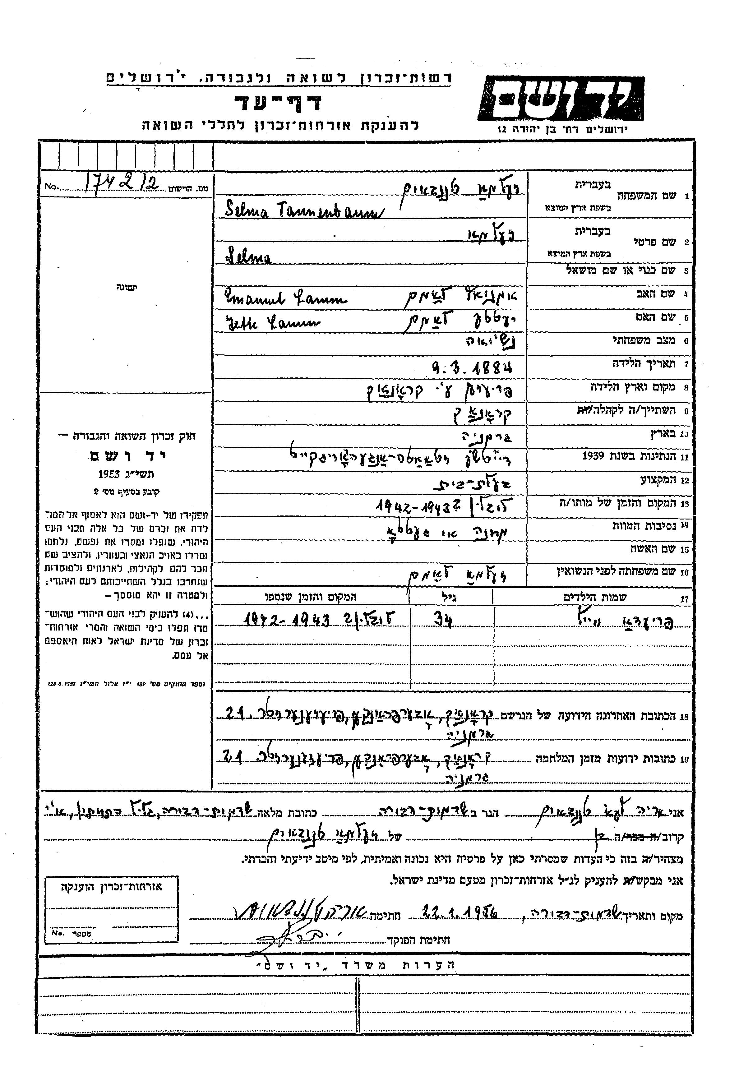 יד ושם - המפעל להנצחת השמות בדפי עד
