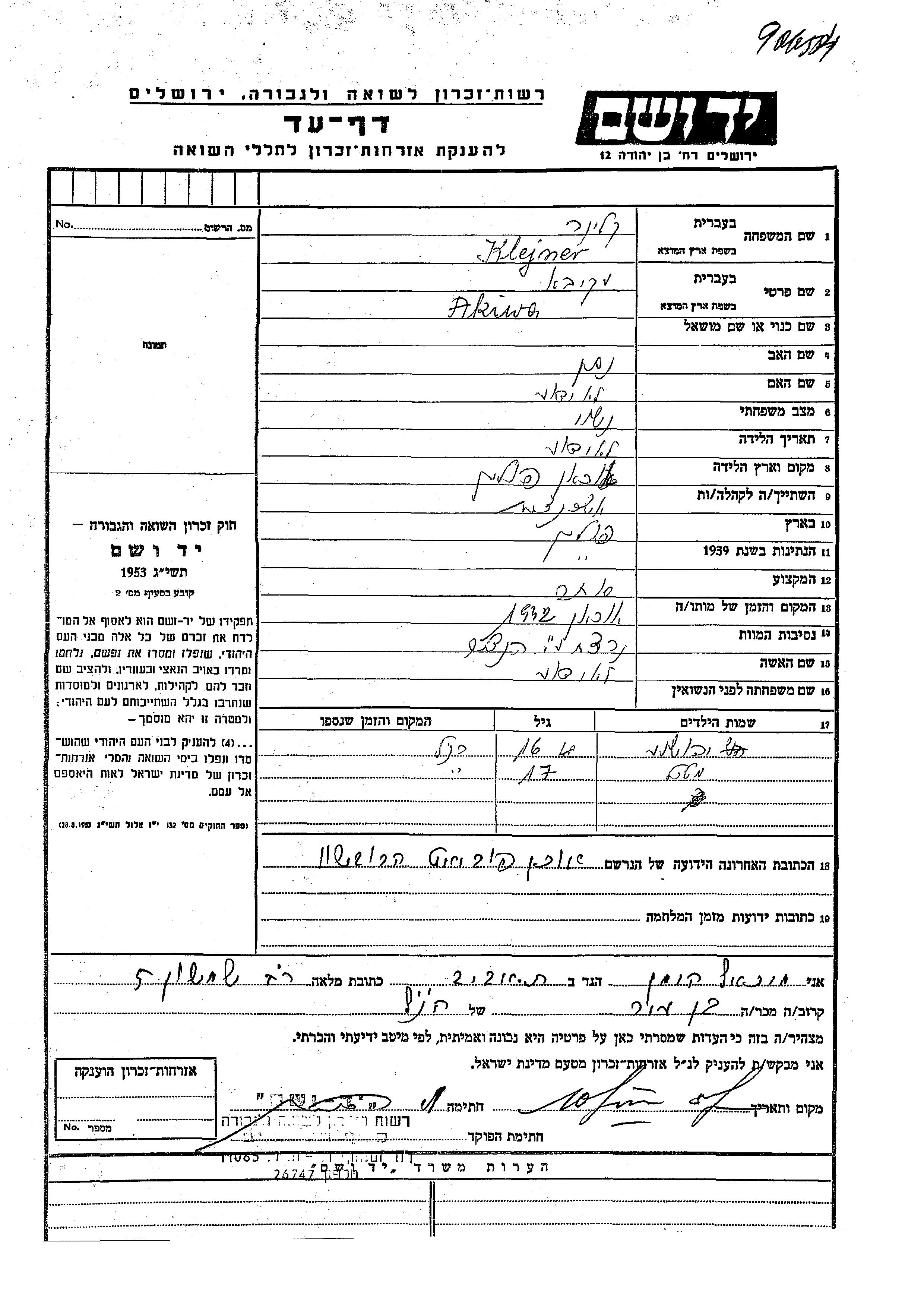 יד ושם - המפעל להנצחת השמות בדפי עד