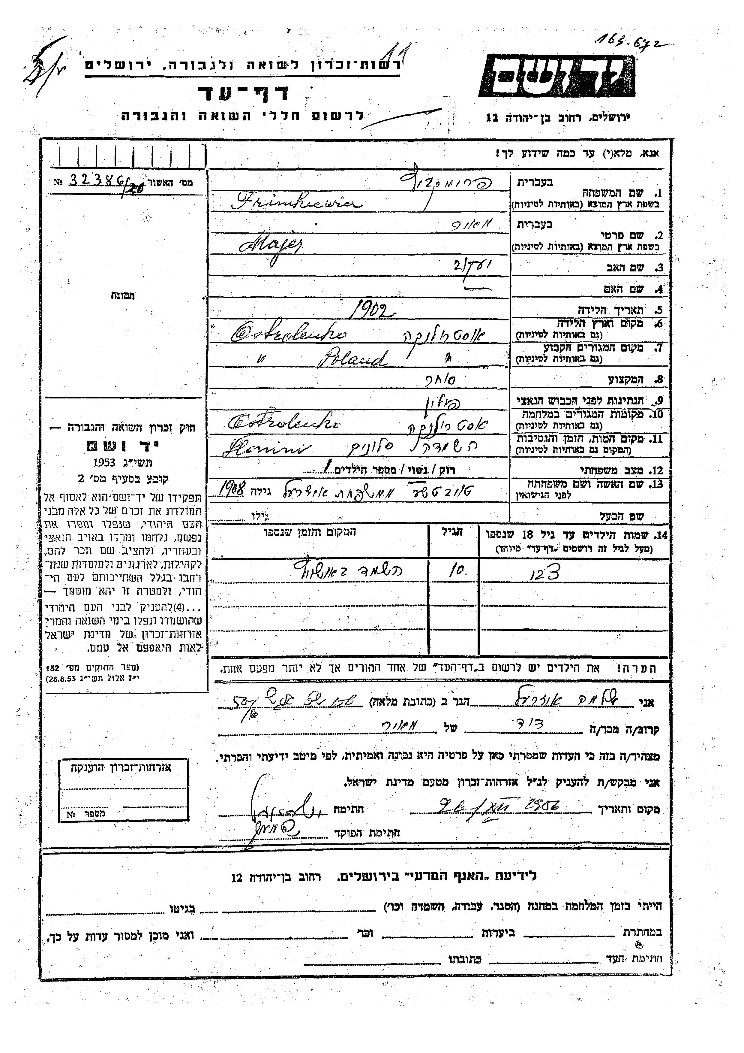 Frimkiewicz צבי Ostrolenka, פולין דף-עד