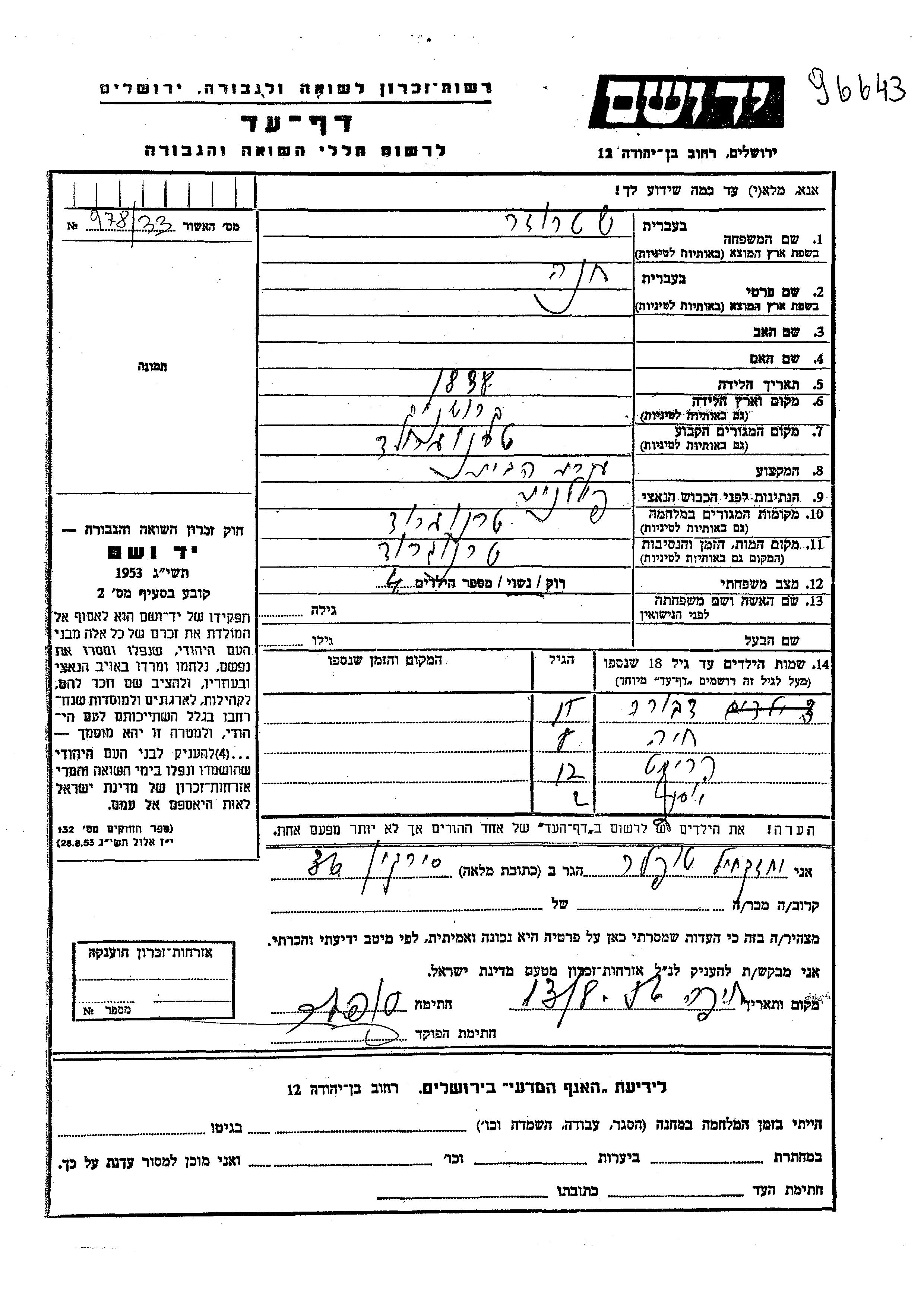 יד ושם - המפעל להנצחת השמות בדפי עד