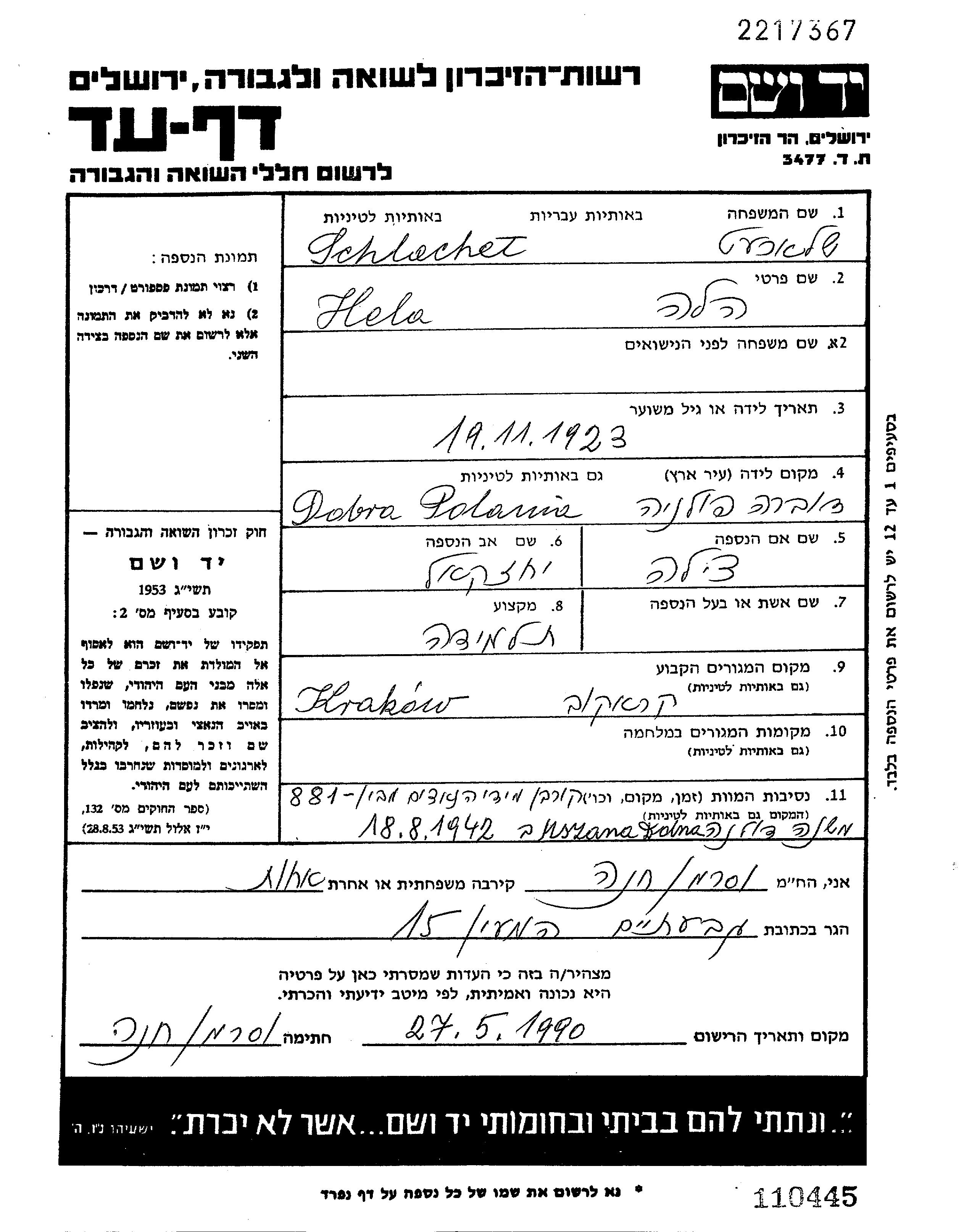 | Schlachet | Hele | Dobra, פולין | דף-עד | |