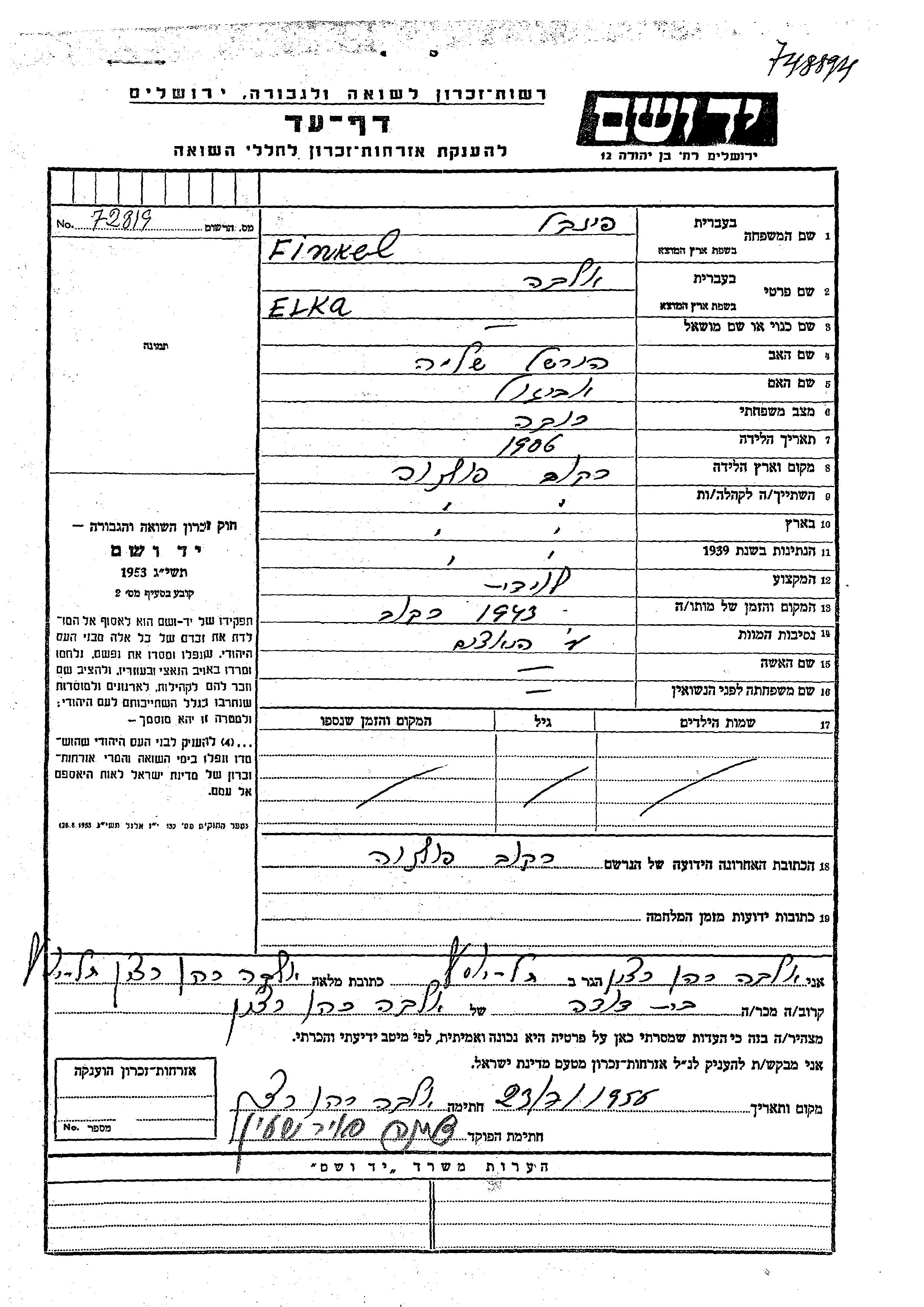 יד ושם - המפעל להנצחת השמות בדפי עד