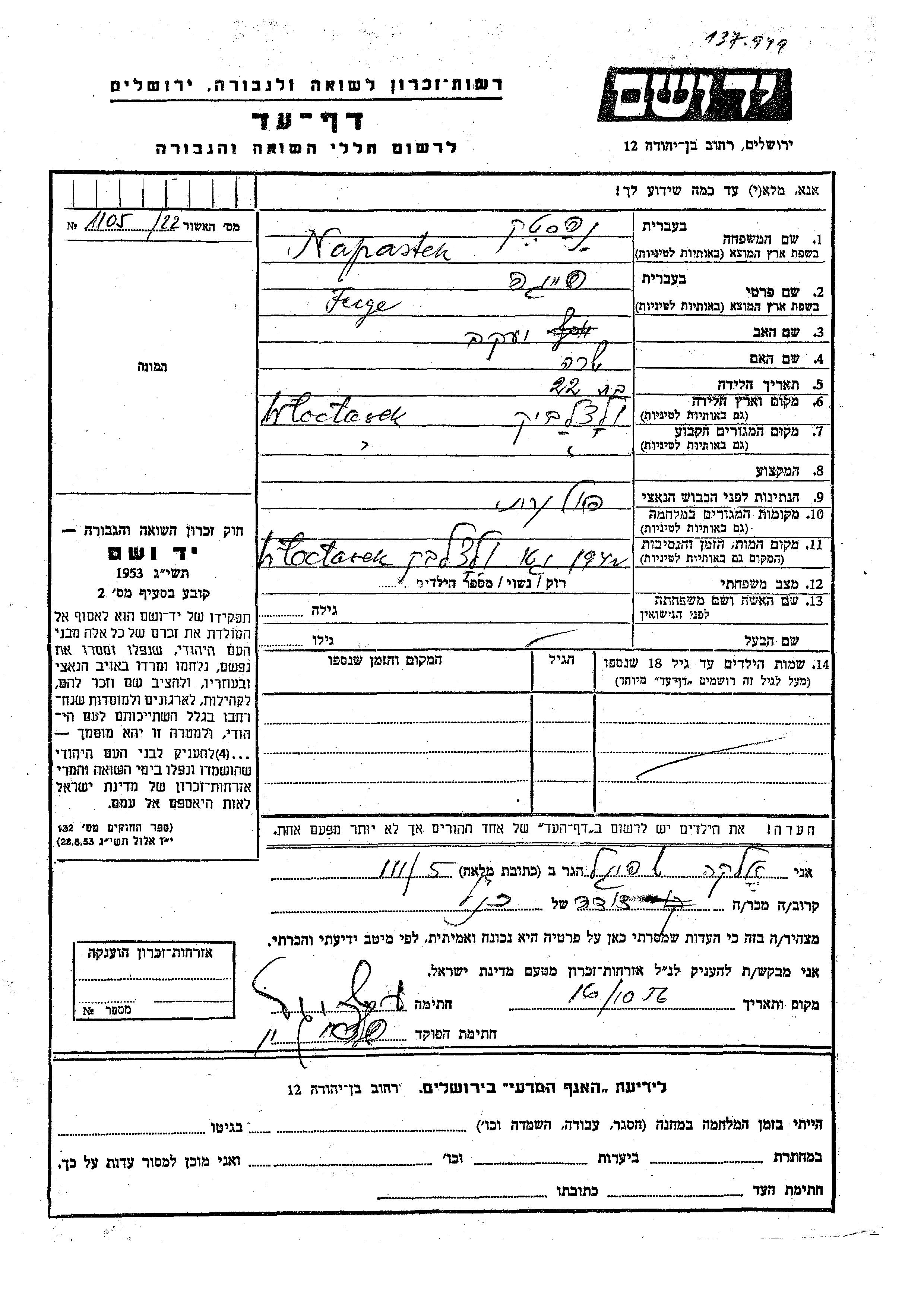 חיפוש שם מוסר דף העד. חיפוש לפי שם משפחה; כולל גם תוצאות חיפוש לפי שם הנעורים של אישה לפני הנישואין
