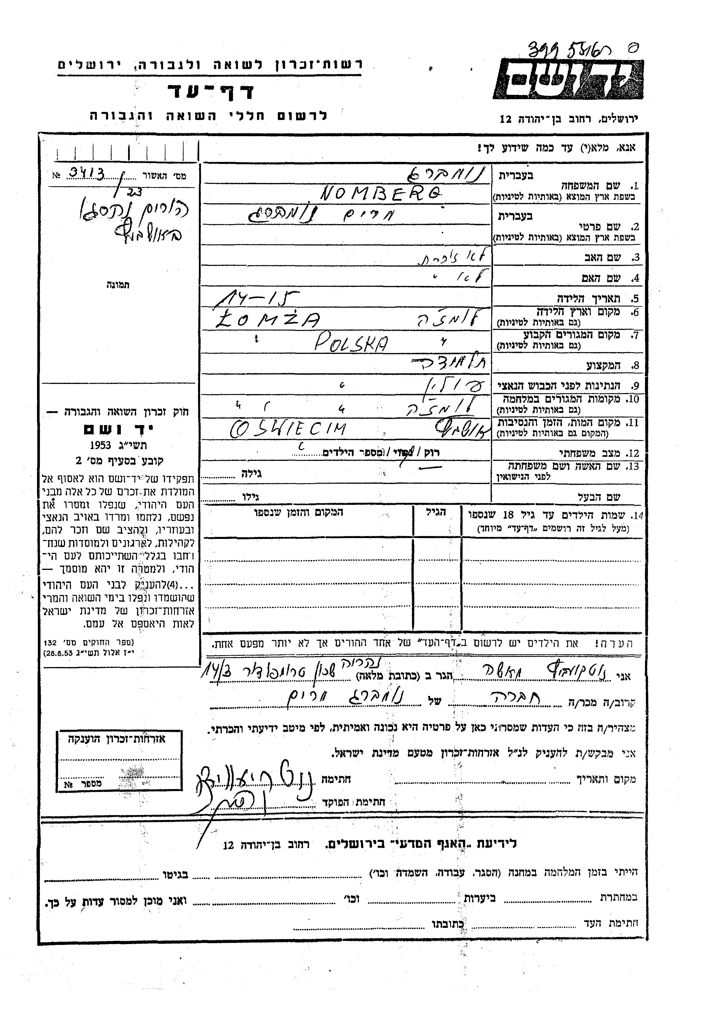 יד ושם - המפעל להנצחת השמות בדפי עד