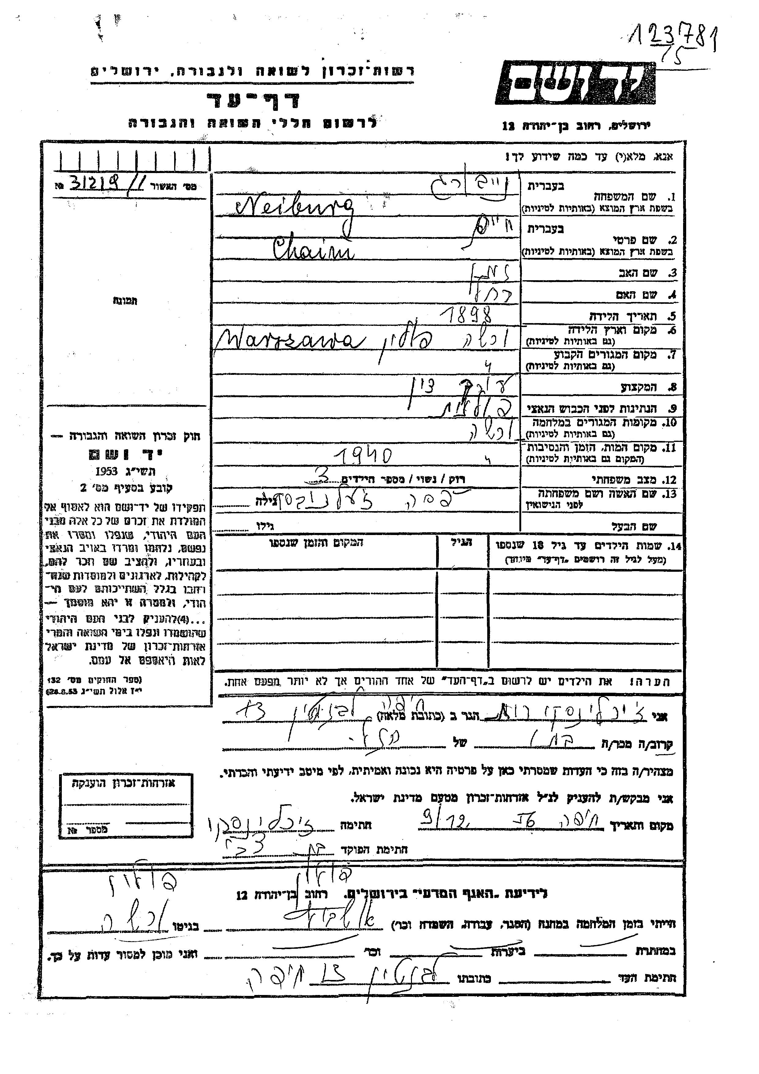 נייבורג חיים 1898 Warszawa, פולין דף-עד