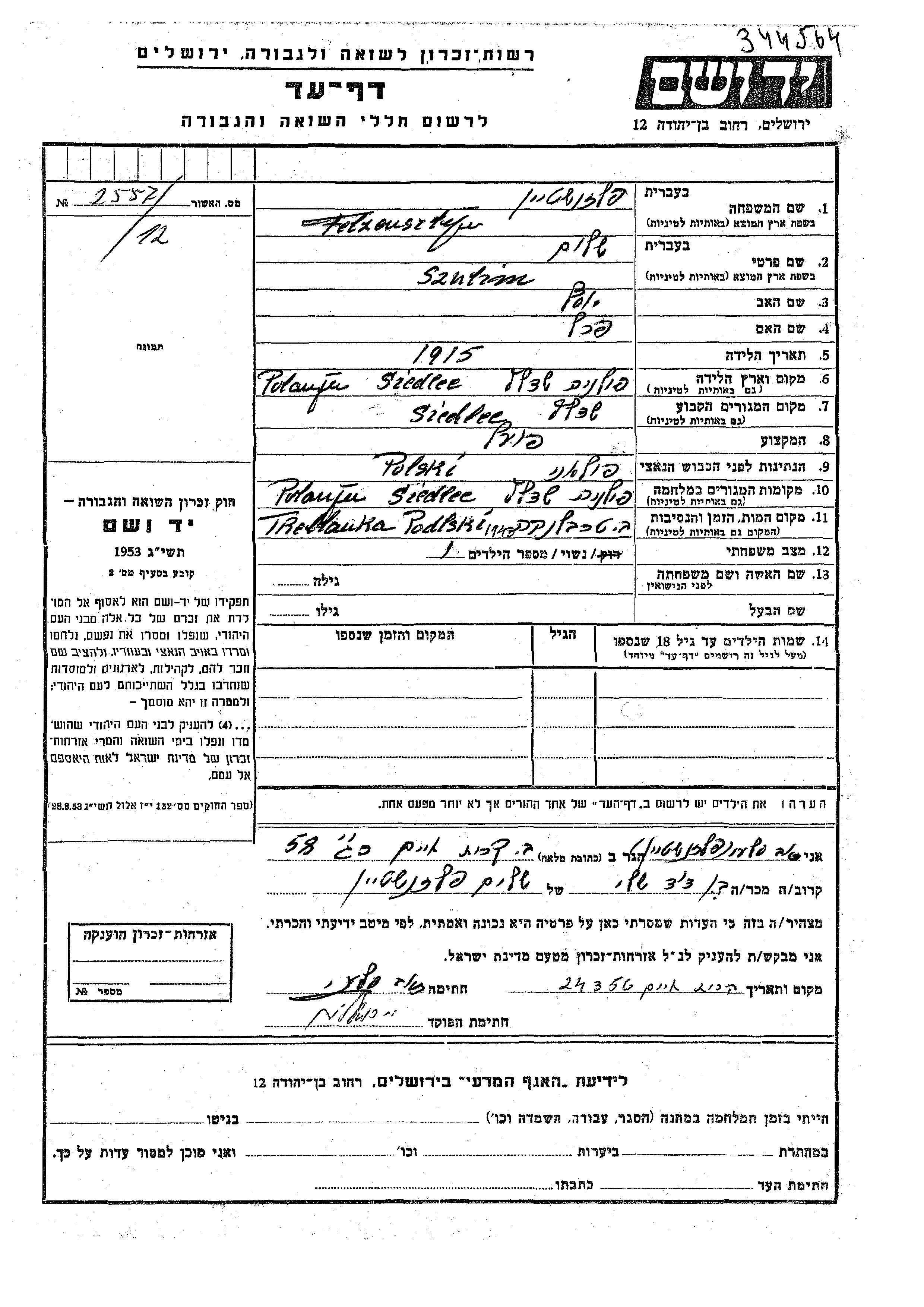 יד ושם - המפעל להנצחת השמות בדפי עד