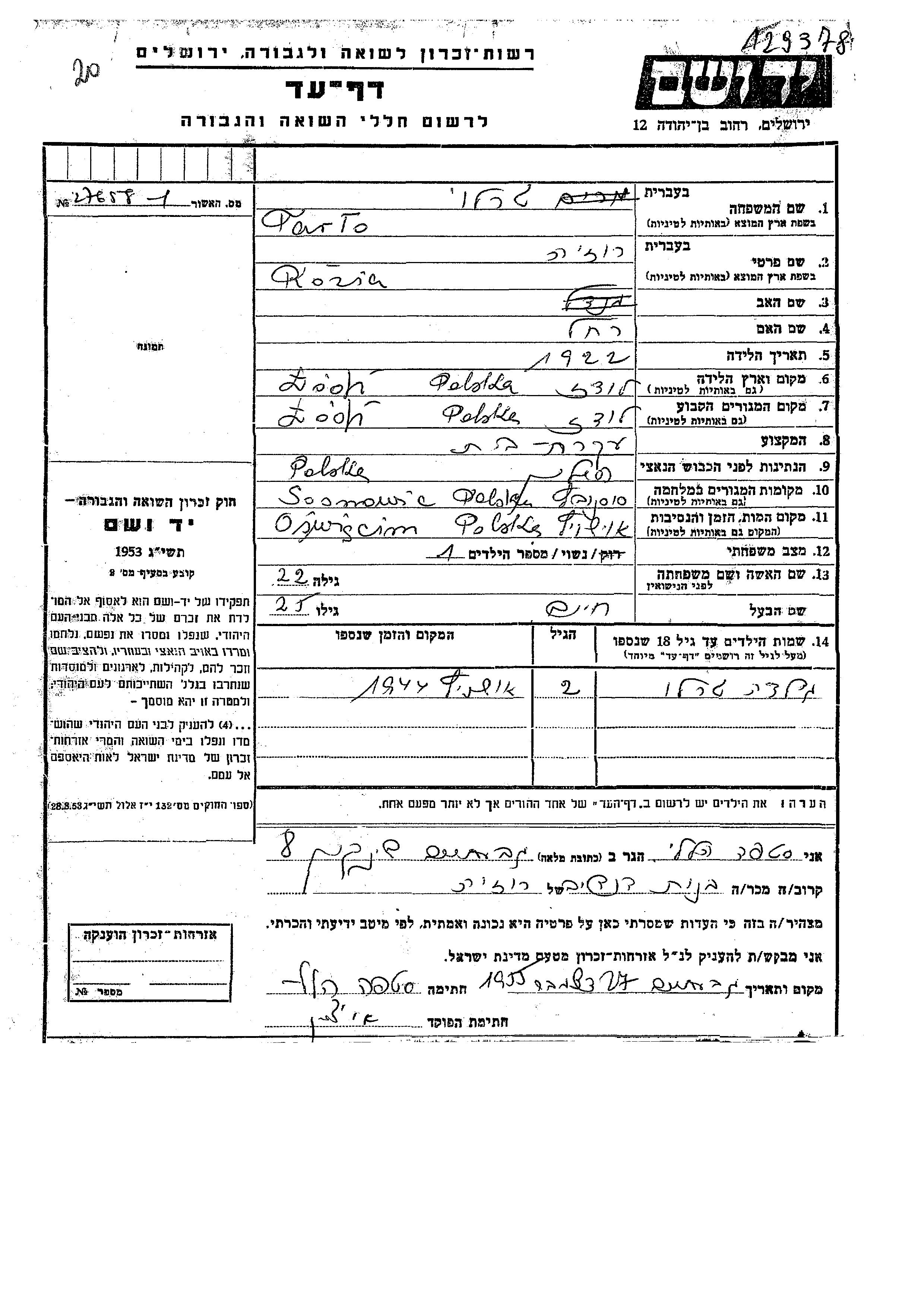 יד ושם - המפעל להנצחת השמות בדפי עד