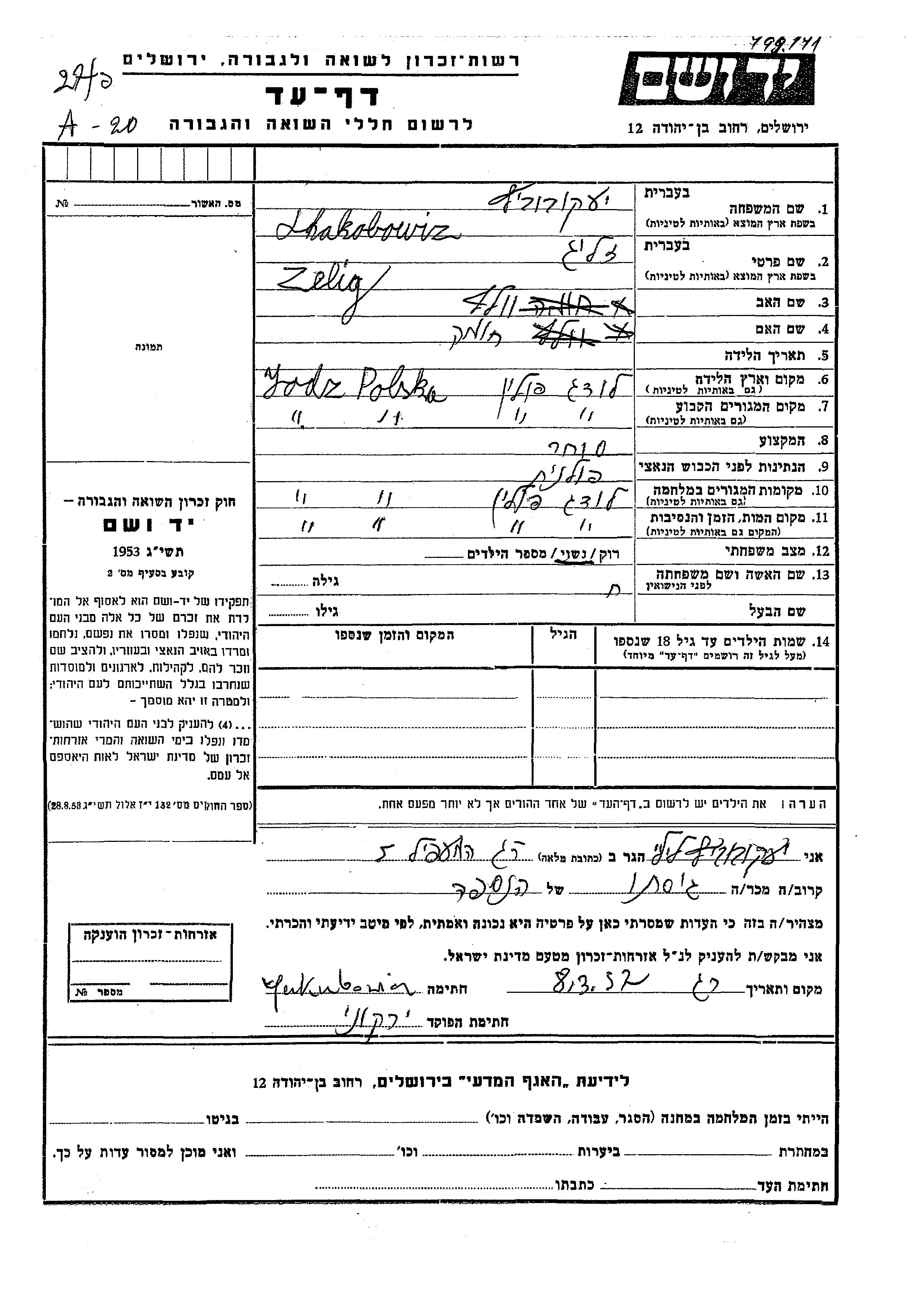 Jhakobowiz זליג Lodz, פולין דף-עד