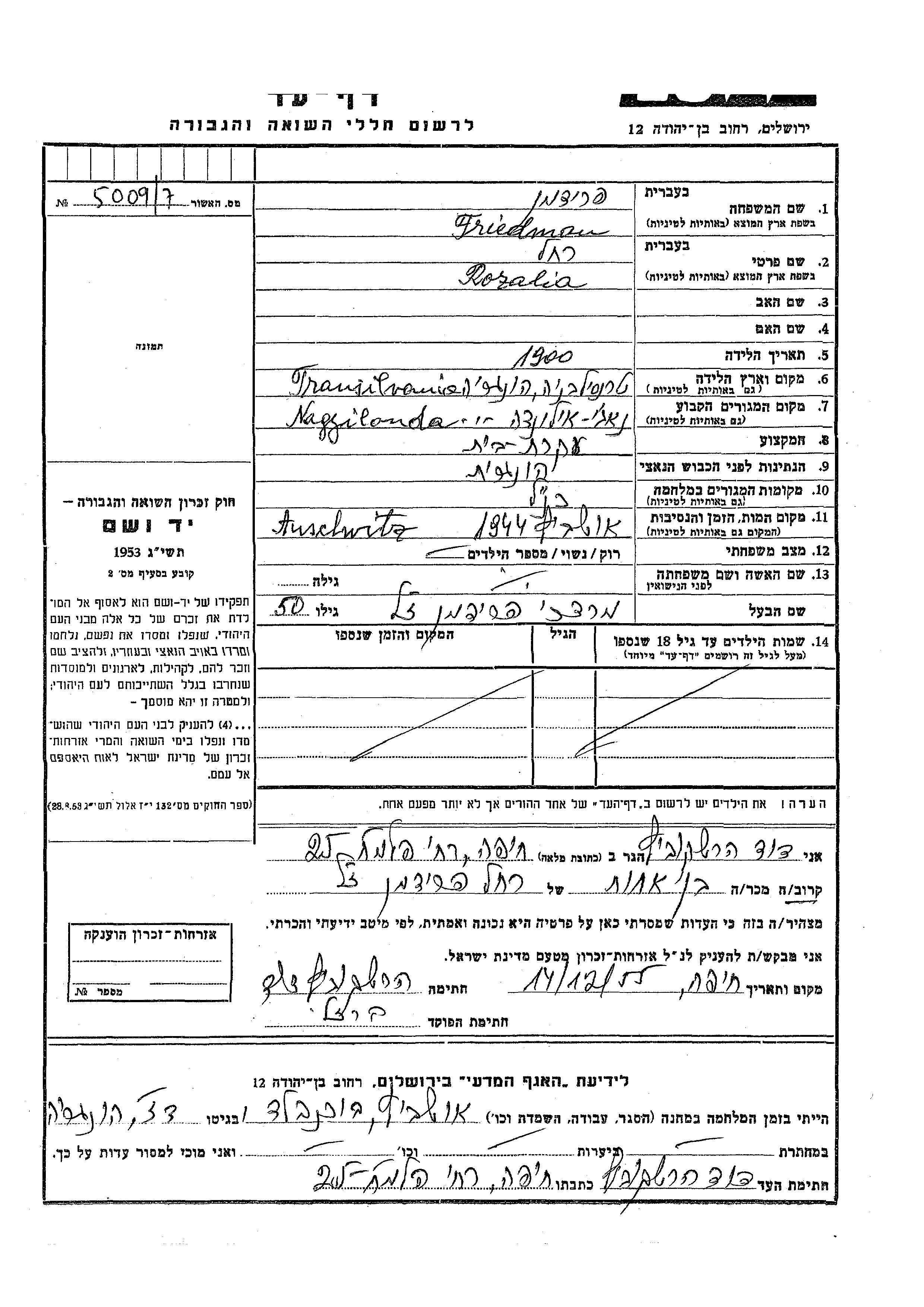 Friedman רוזליה רחל 1900 Nagy Almas, רומניה דף-עד