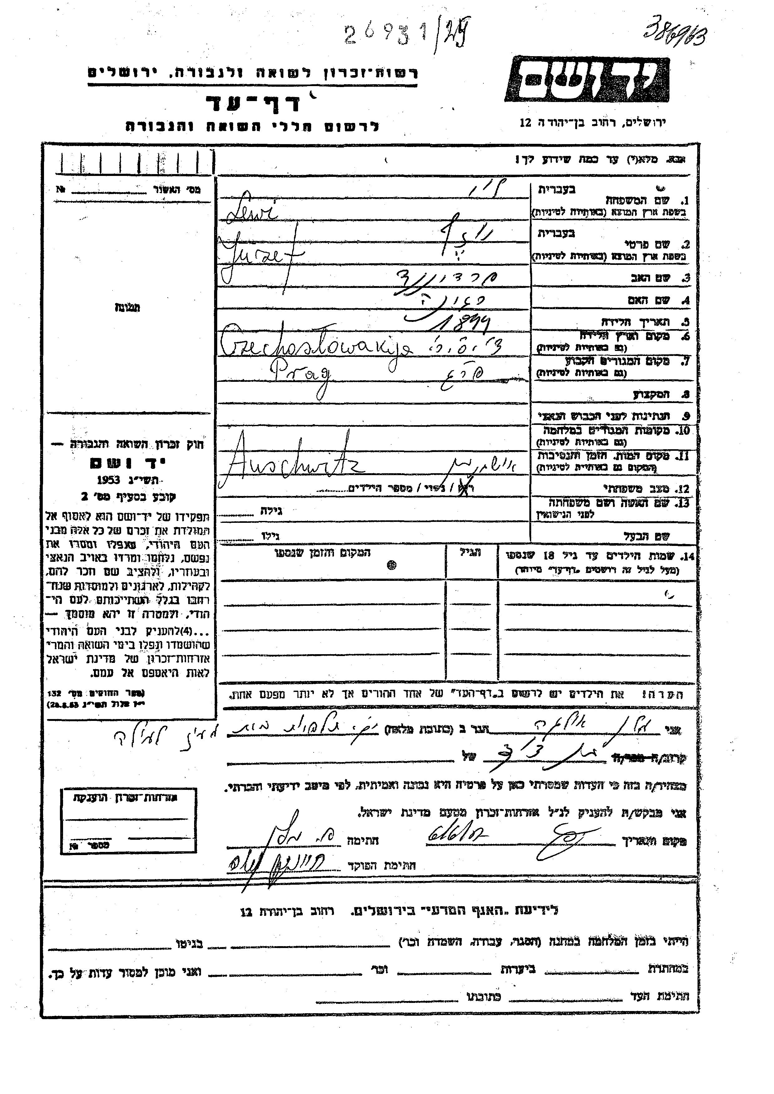 Yuzef Lewi נולד בצ'כוסלובקיה בשנת 1899 לפרדיננד ורגינה. הוא היה נשוי. לפני מלחמת העולם השניה התגורר בPrag שבצ'כוסלובקיה. הוא נרצח בשואה. מקום המוות: Auschwitz שבפולין.