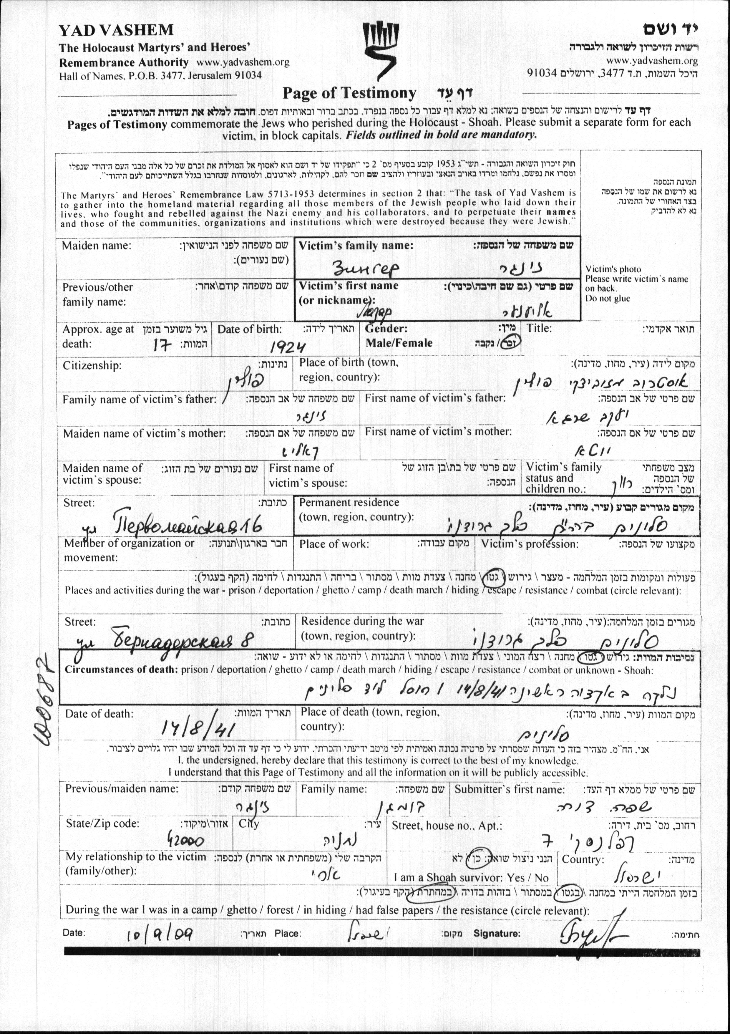יד ושם - המפעל להנצחת השמות בדפי עד