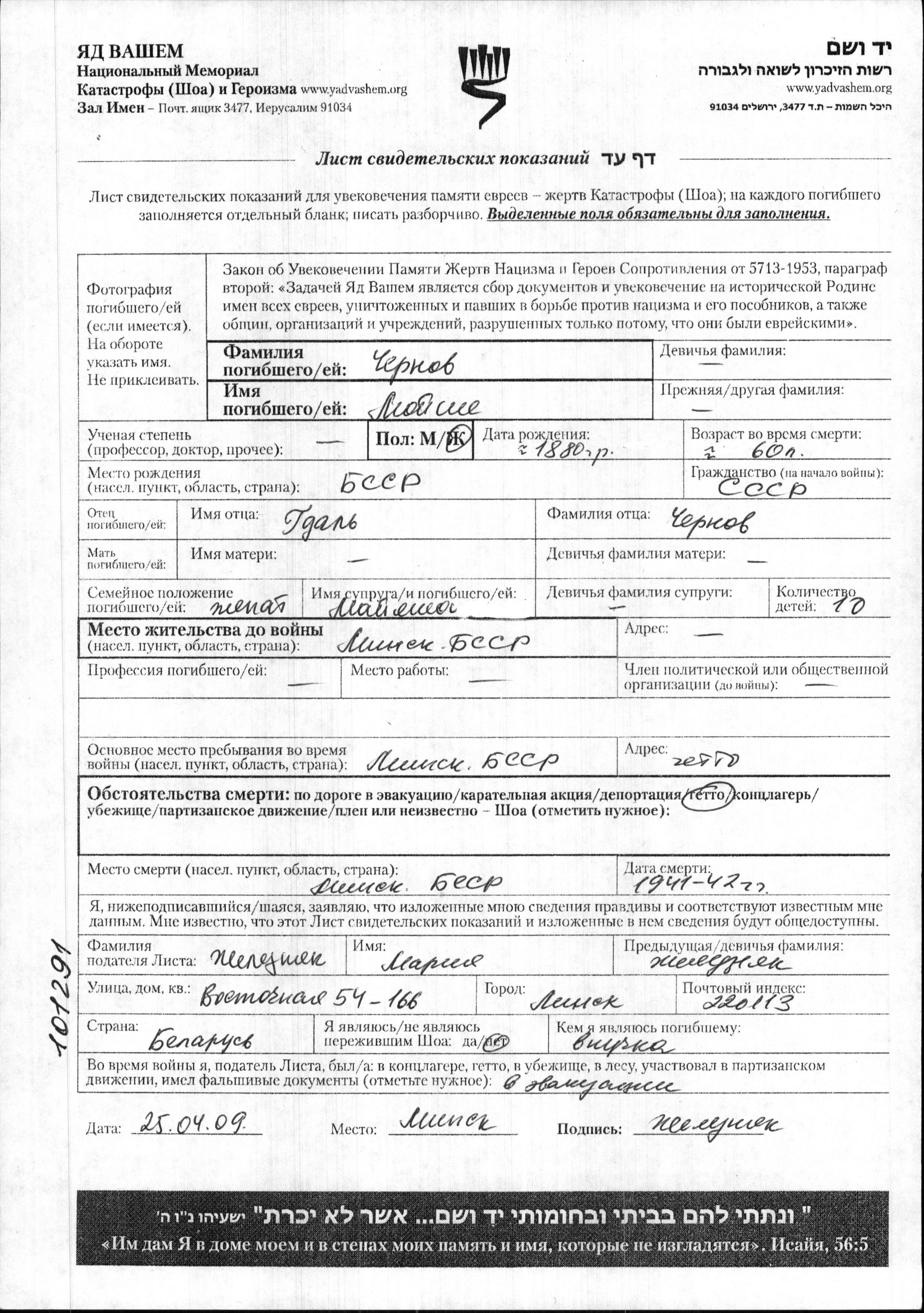 צ'רנוב Moyshe Minsk, ביאלורוסיה (ברה"מ) דף-עד