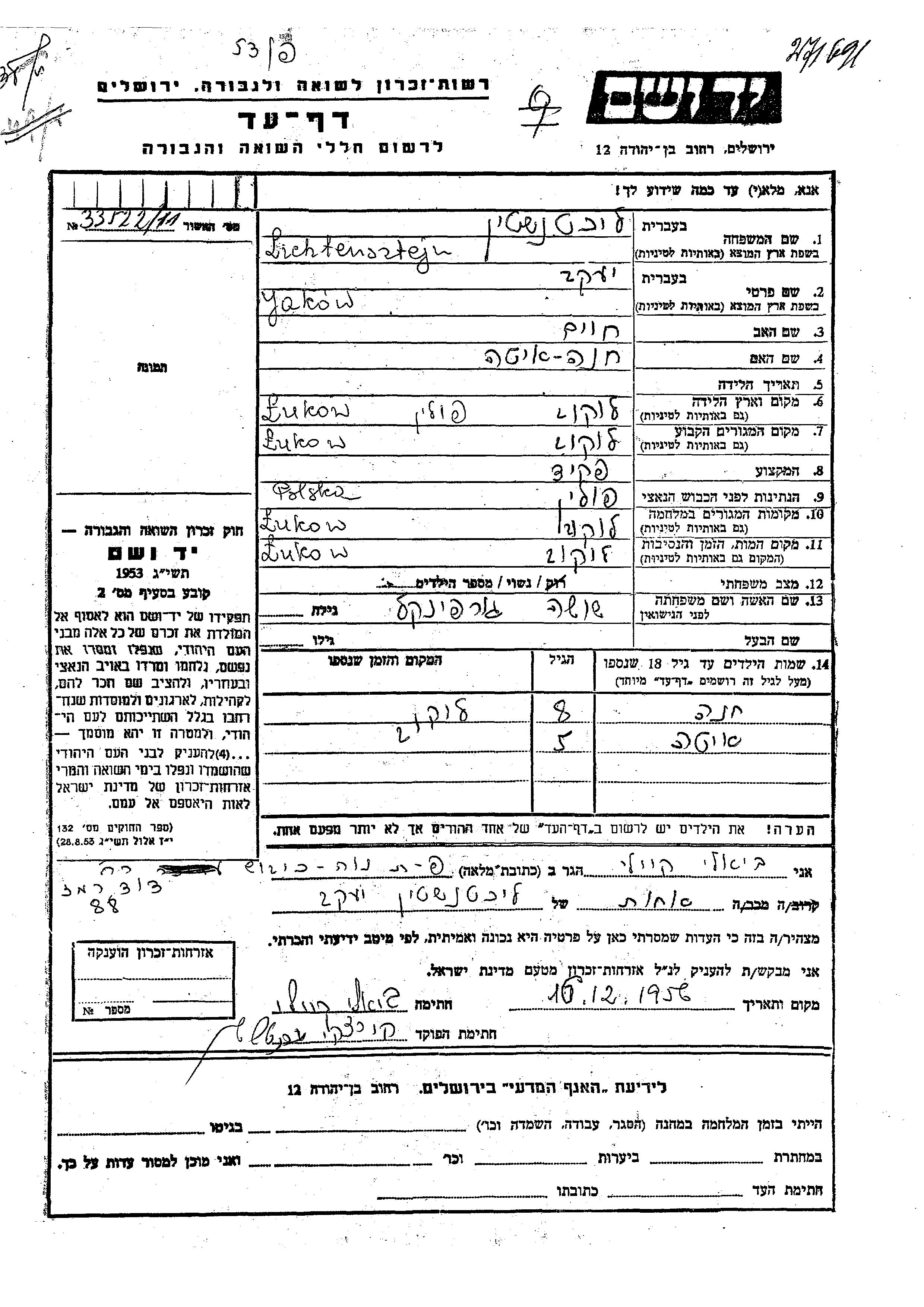 Lichtensztejn Jakow Lukow, פולין דף-עד