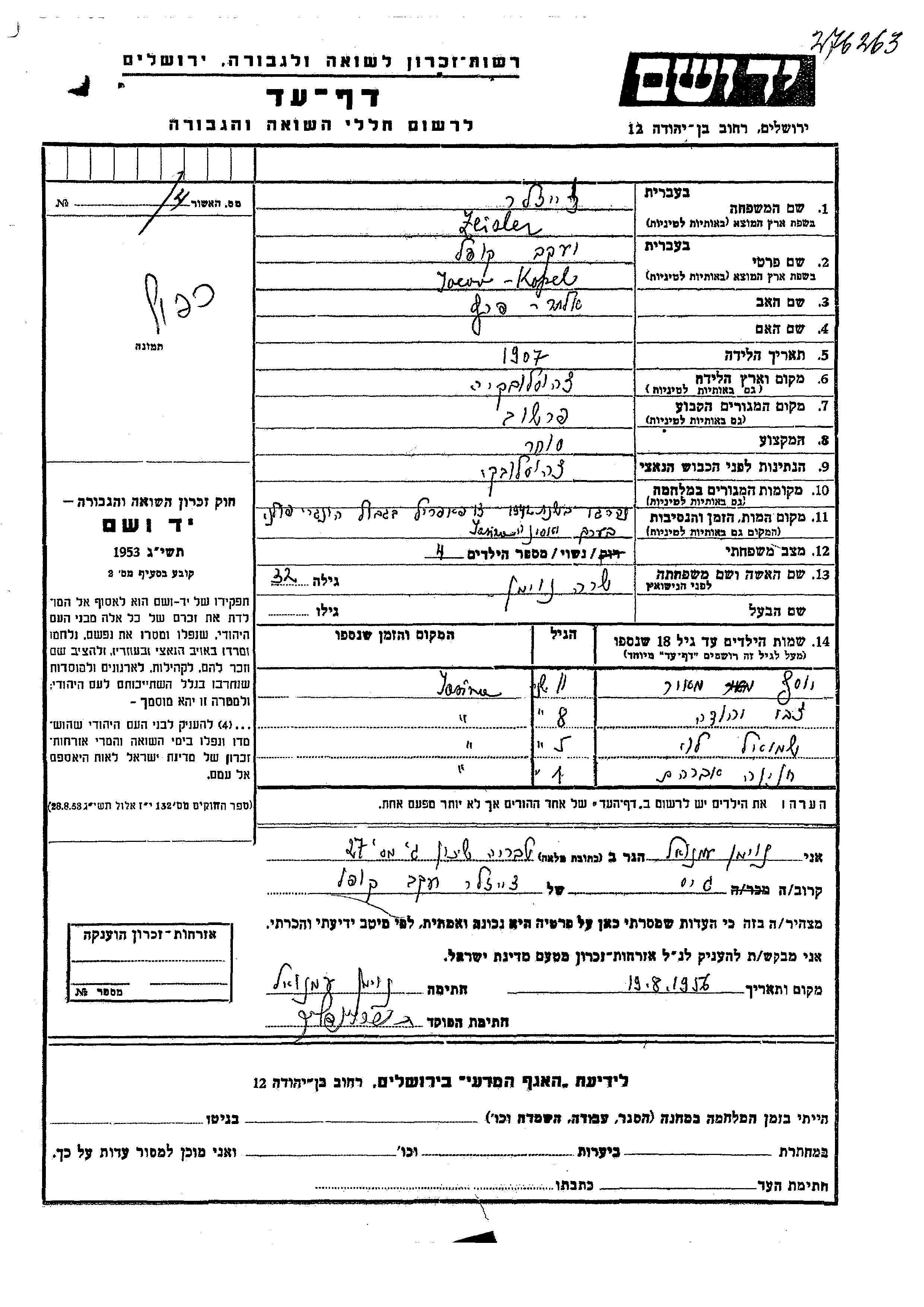חיפוש שם מוסר דף העד. חיפוש לפי כל שם פרטי, כולל כינוי או שם חיבה